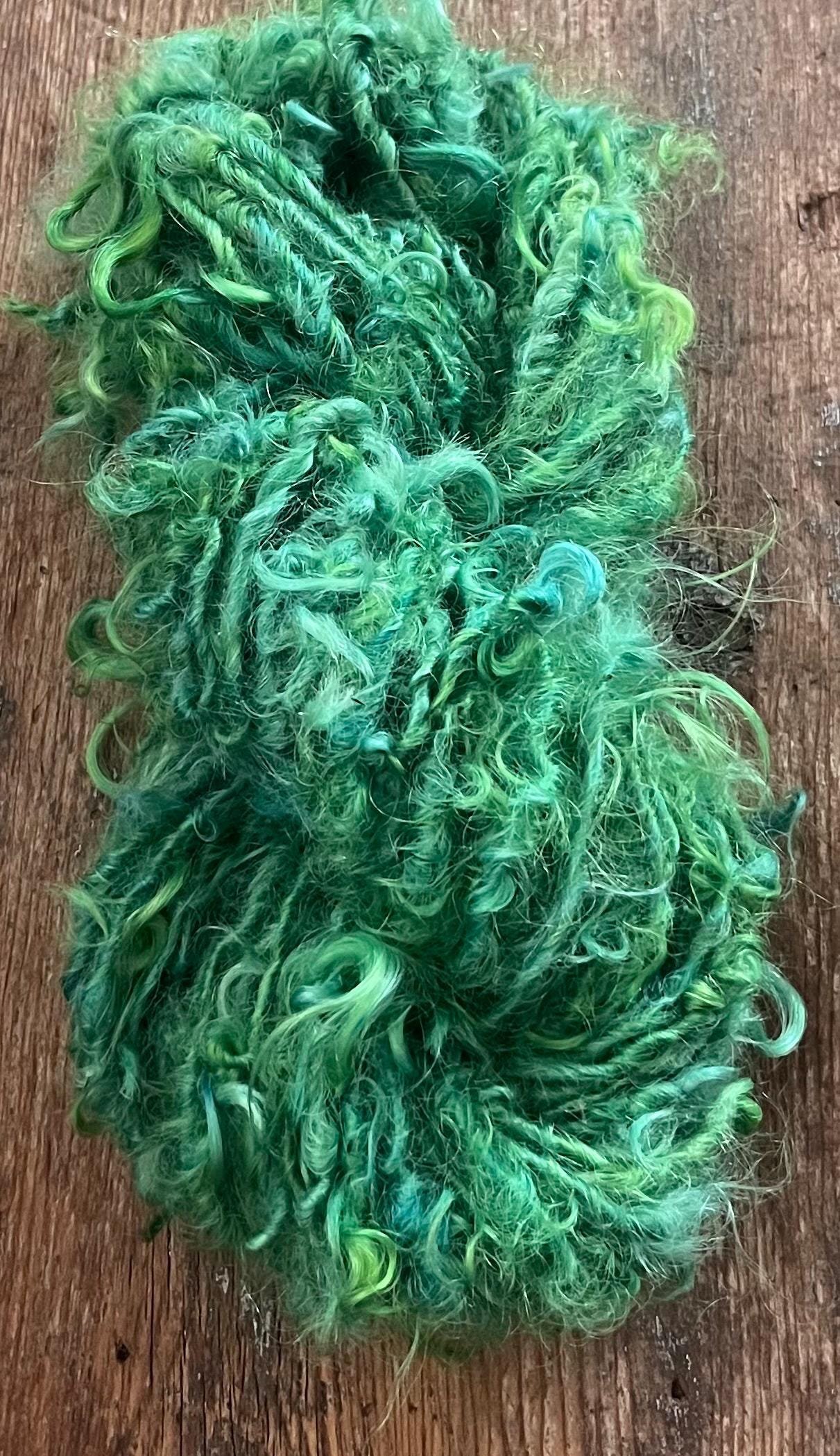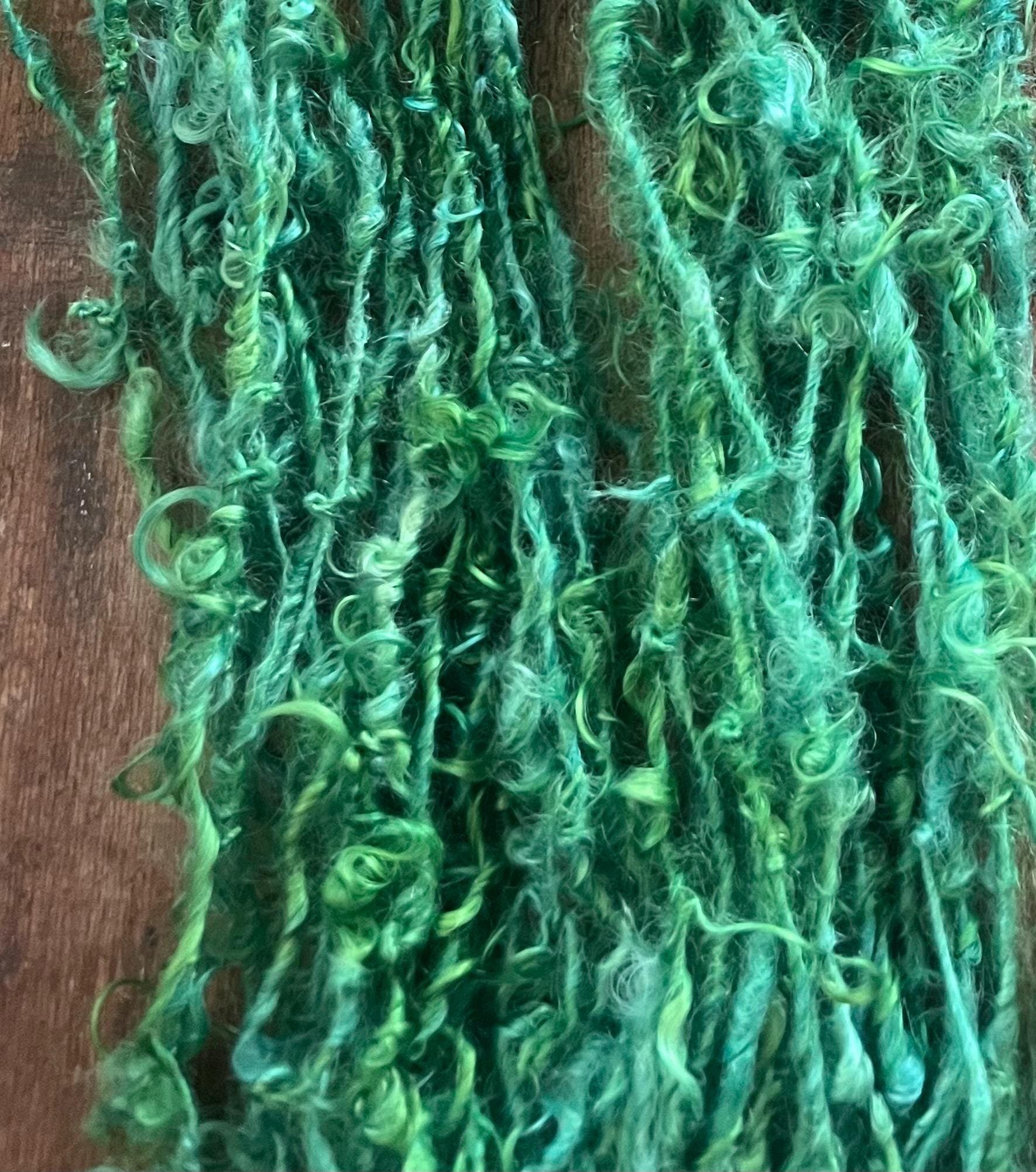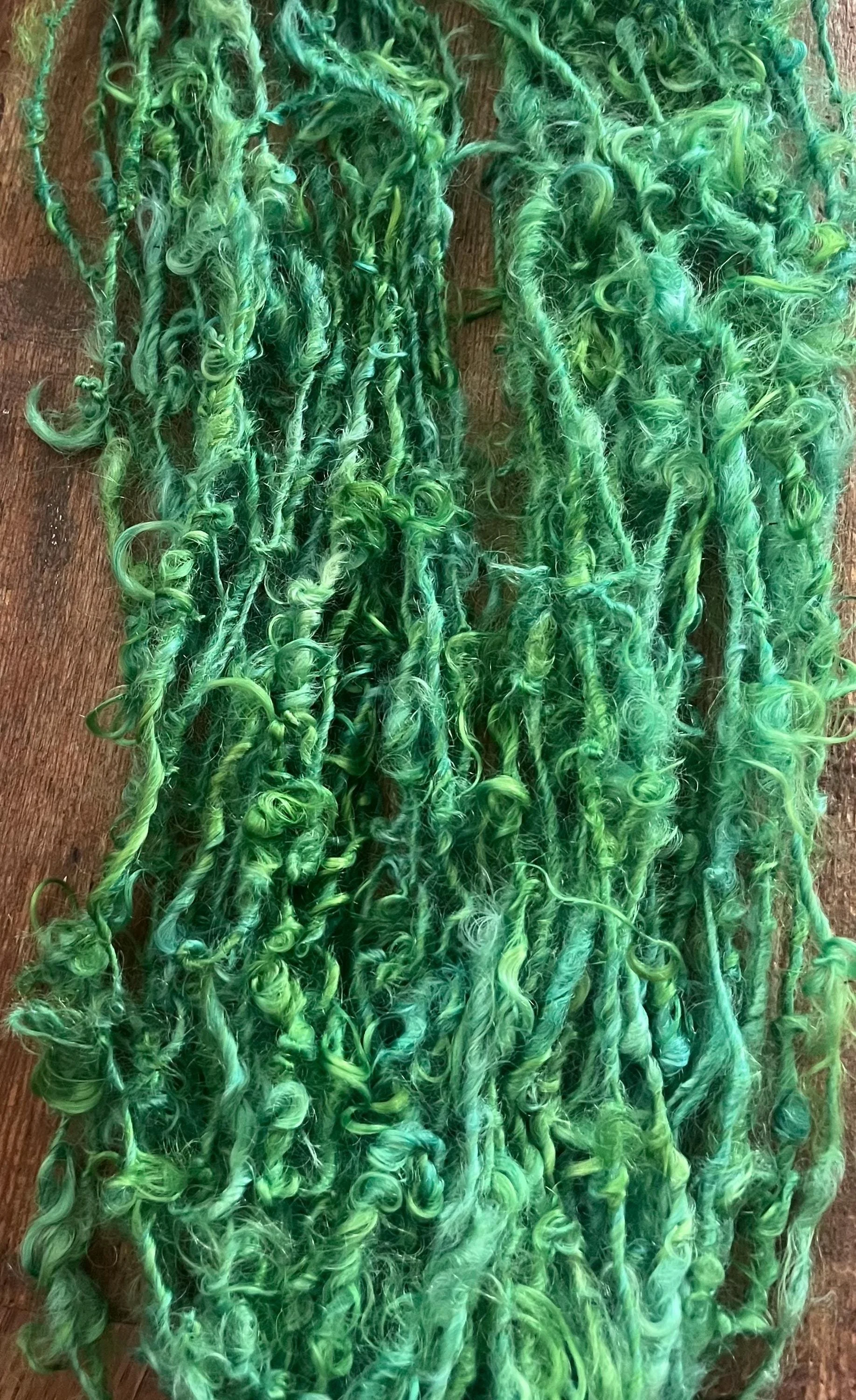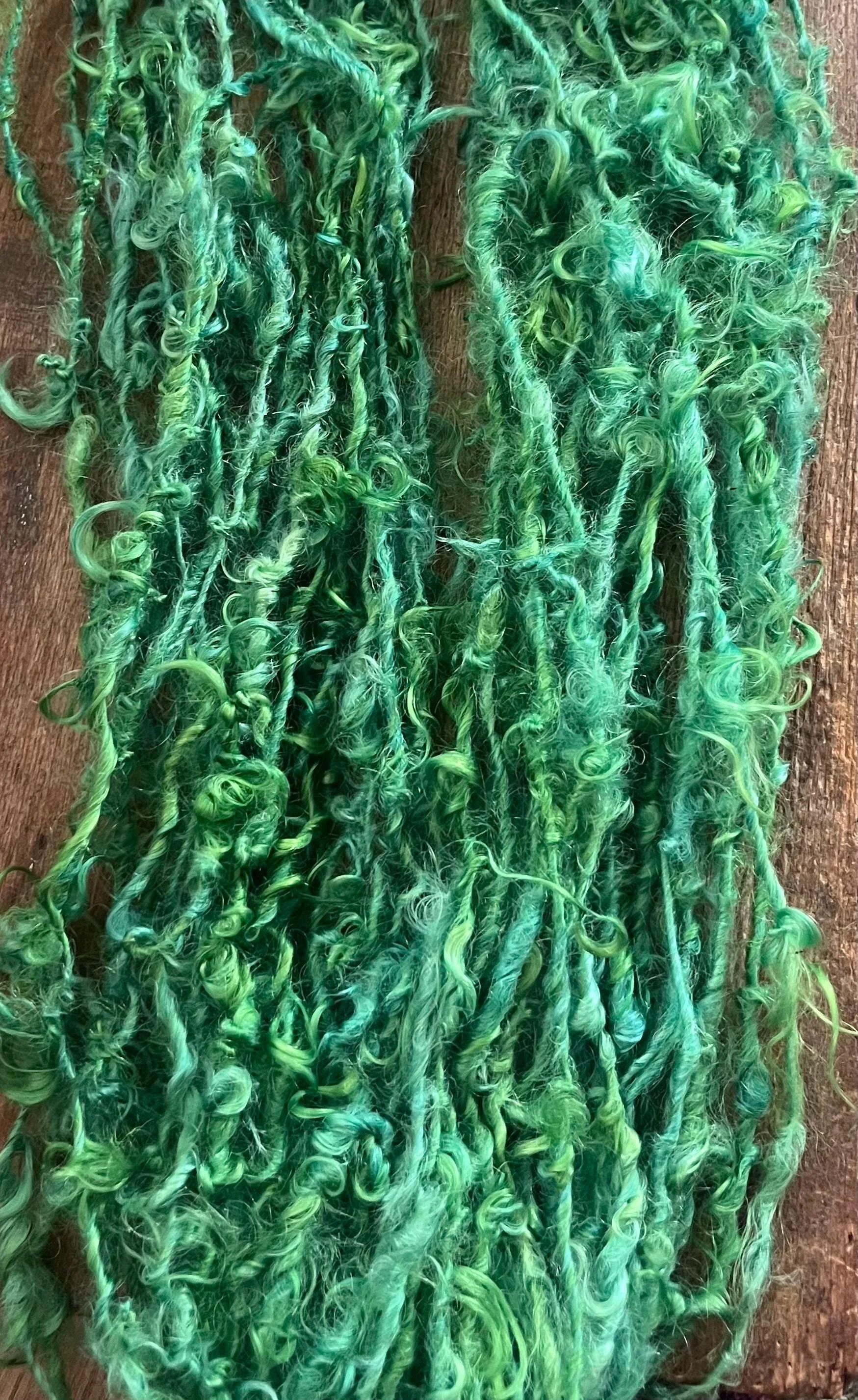 Deep in the Woods - lush green curly handspun yarn, Lincoln wool