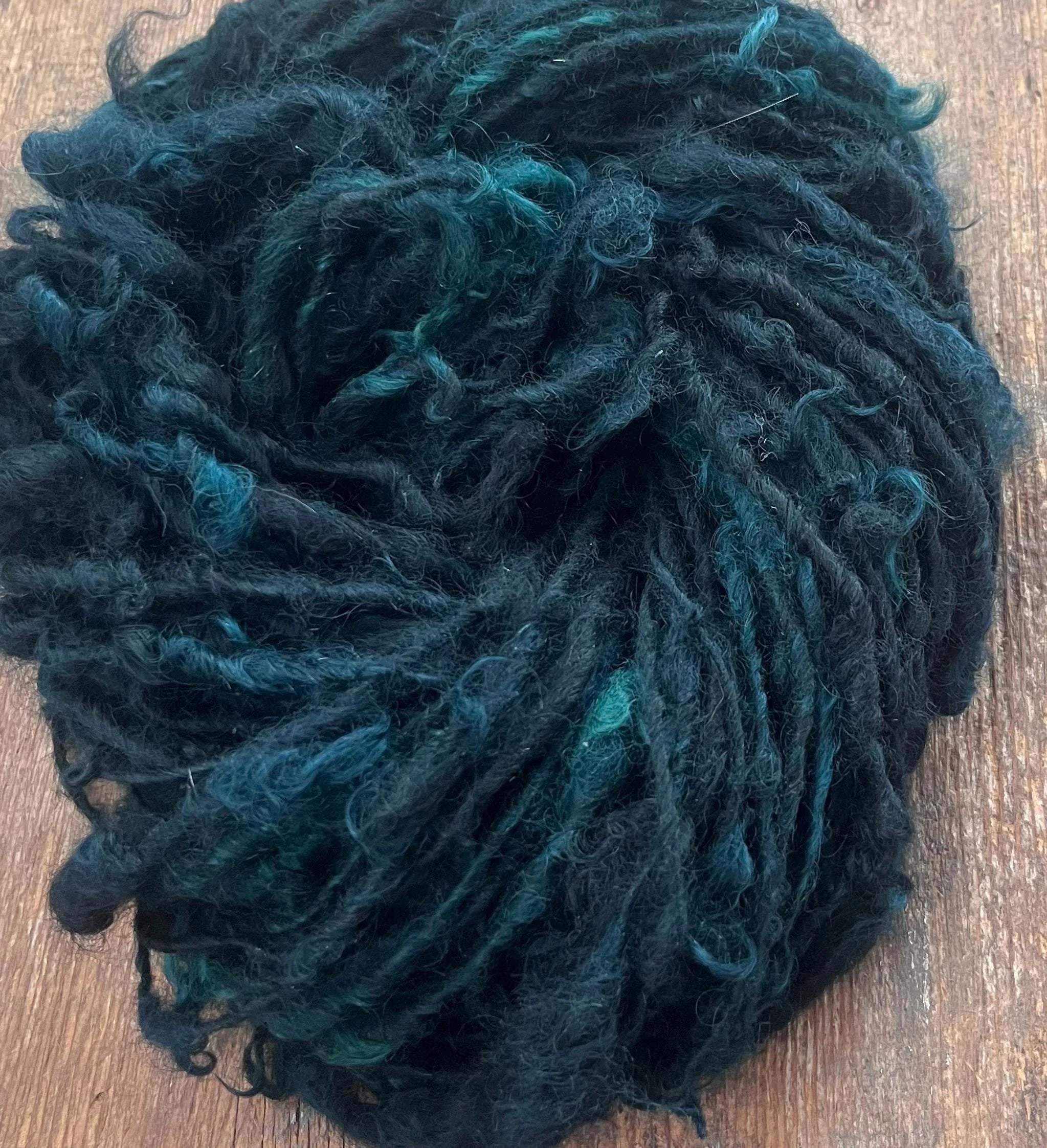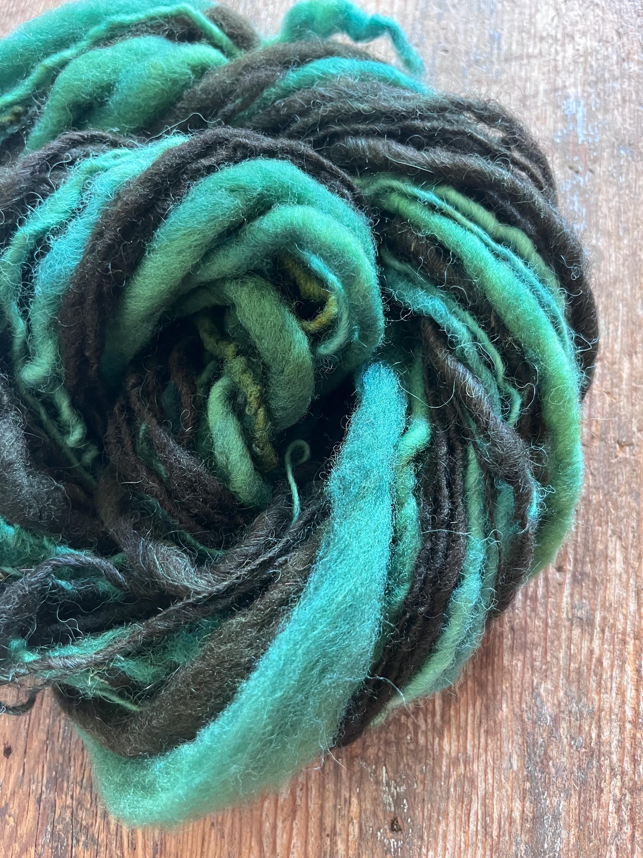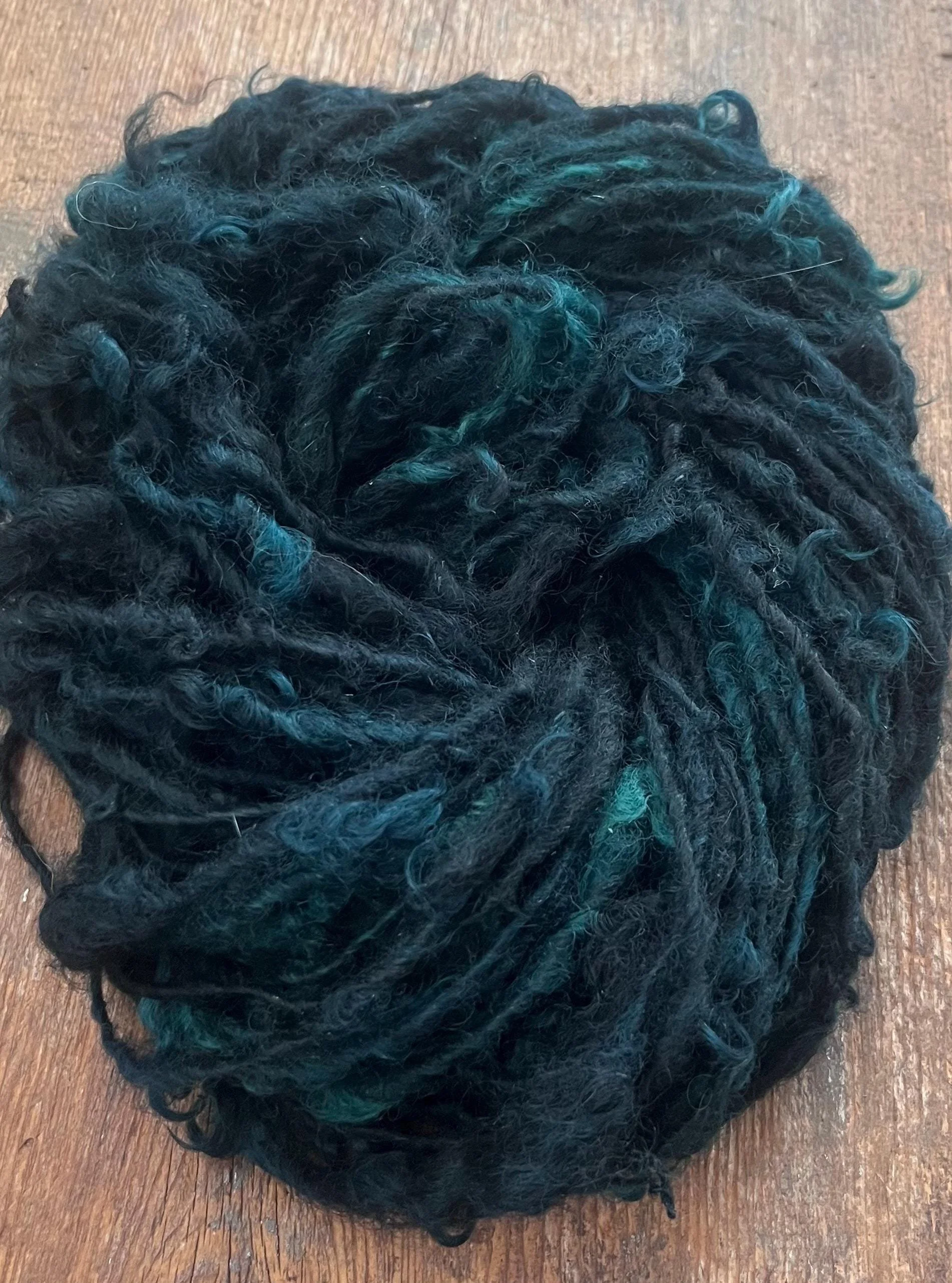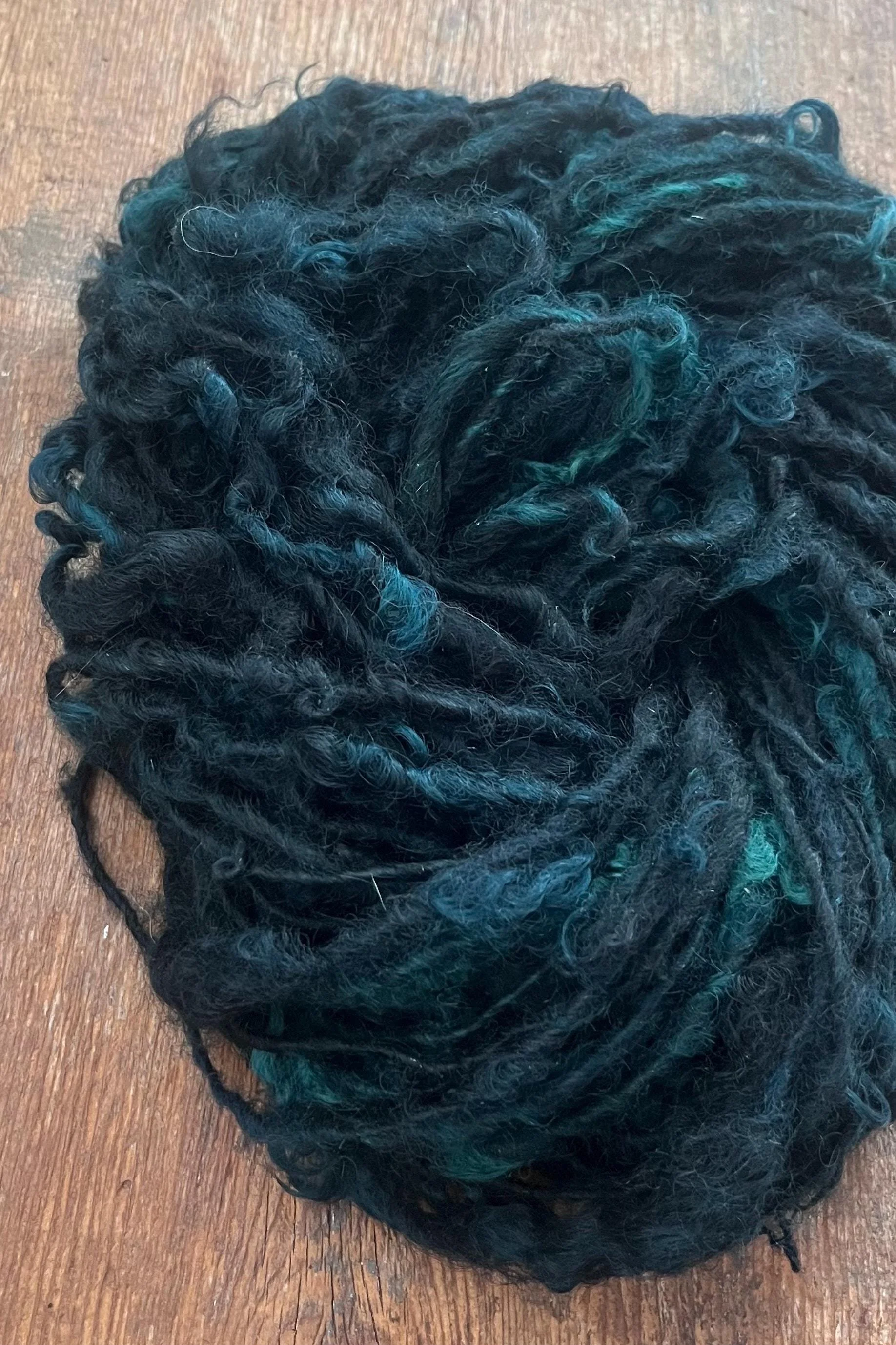 Deep in the Woods - lush green curly handspun yarn, Lincoln wool