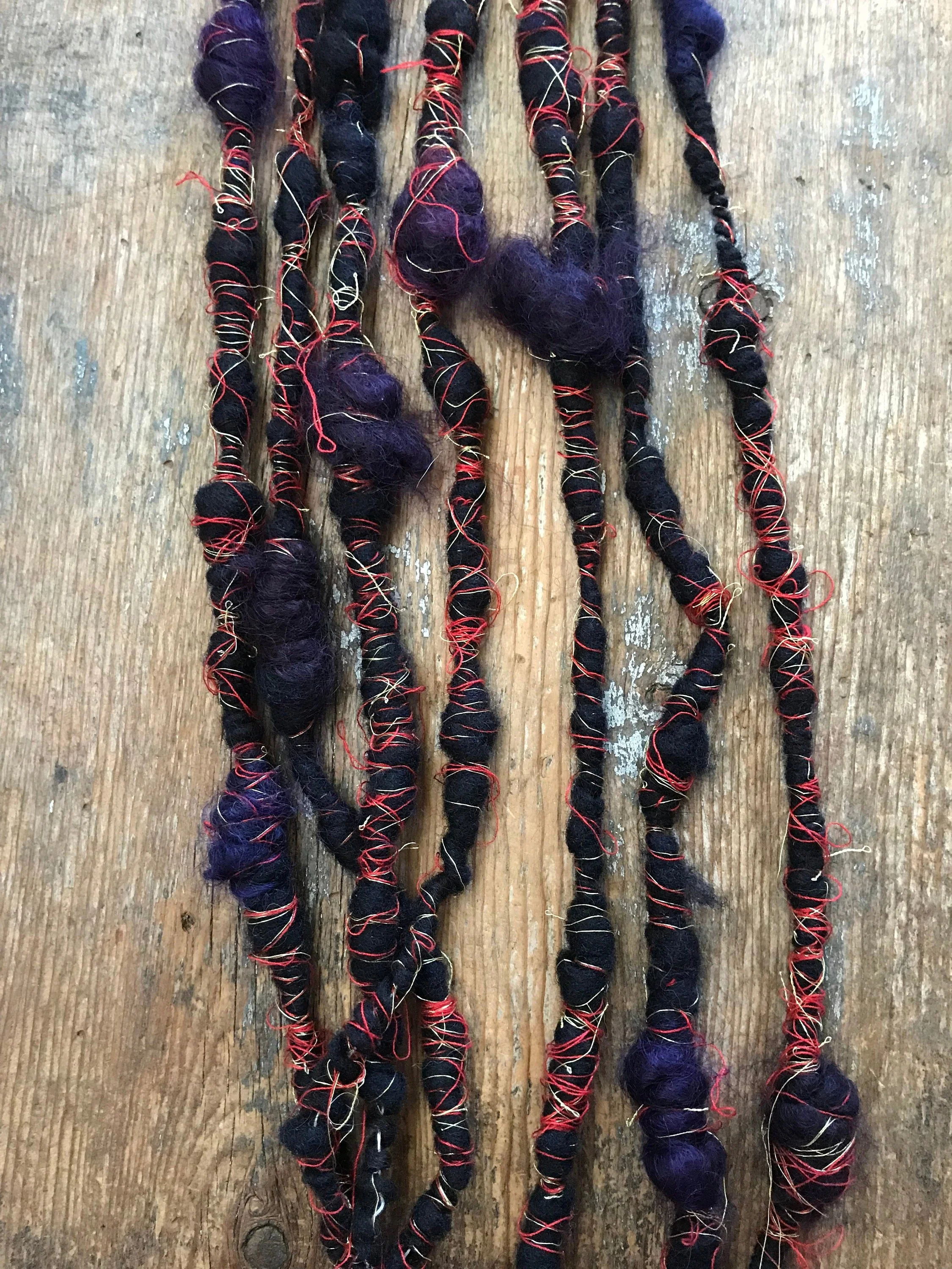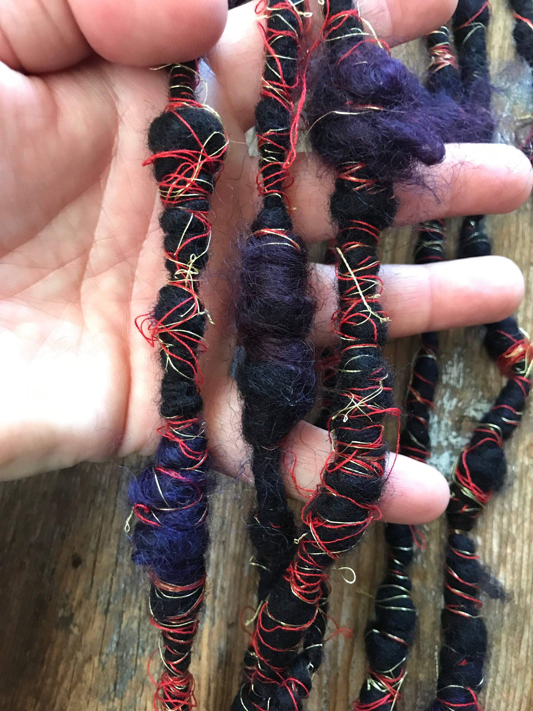 Golden Plum - 4 yards wrapped bulky art yarn coils