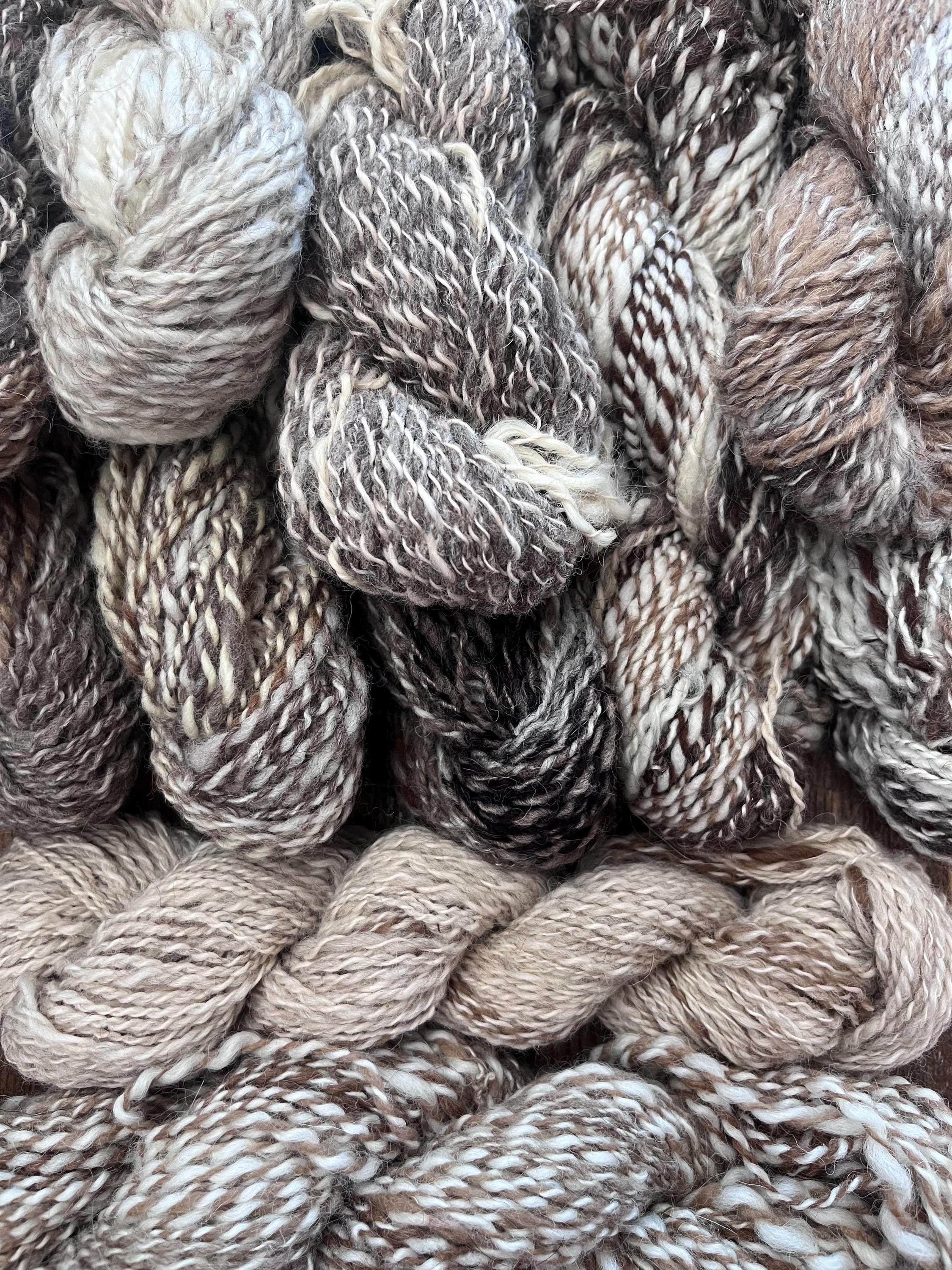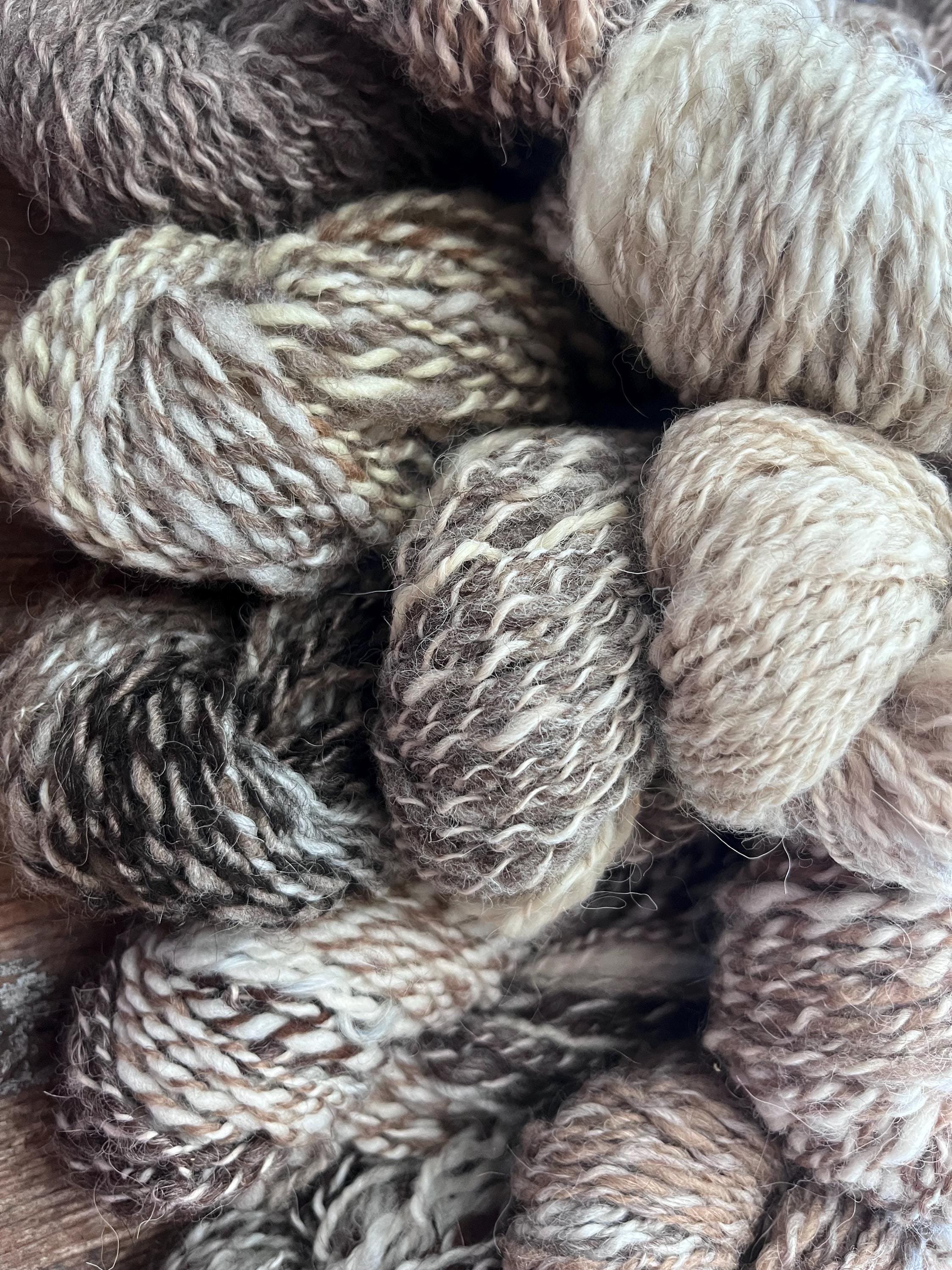 Handspun wool/alpaca 100 yard skeins mystery grab :) undyed, all natural colors, each skein unique