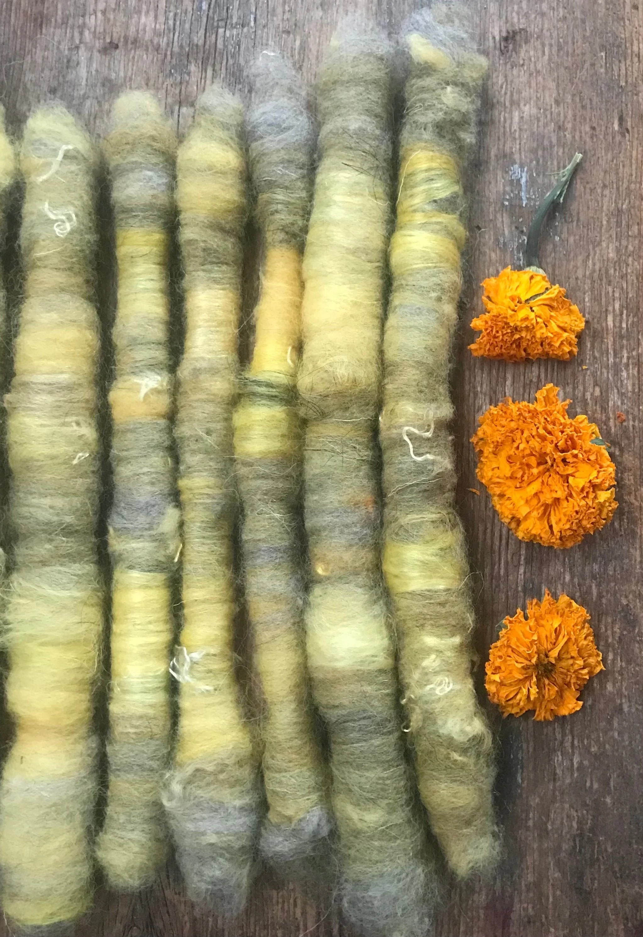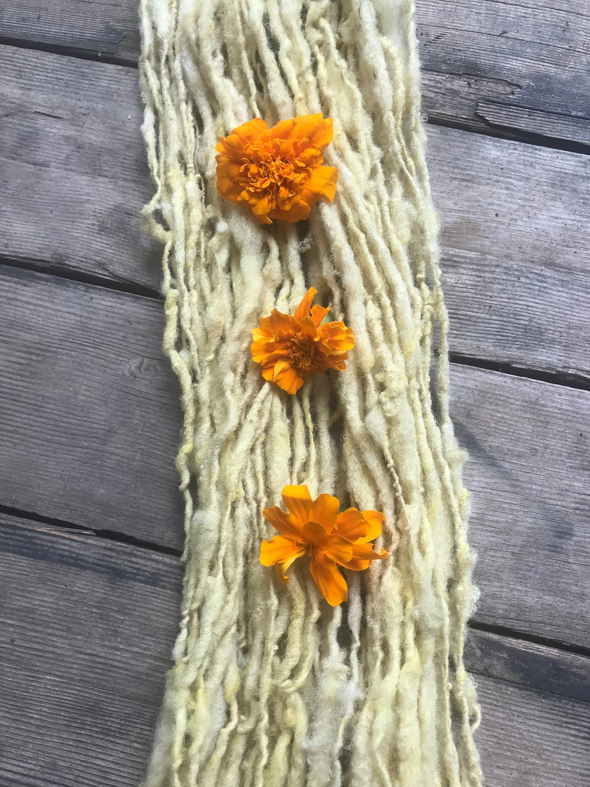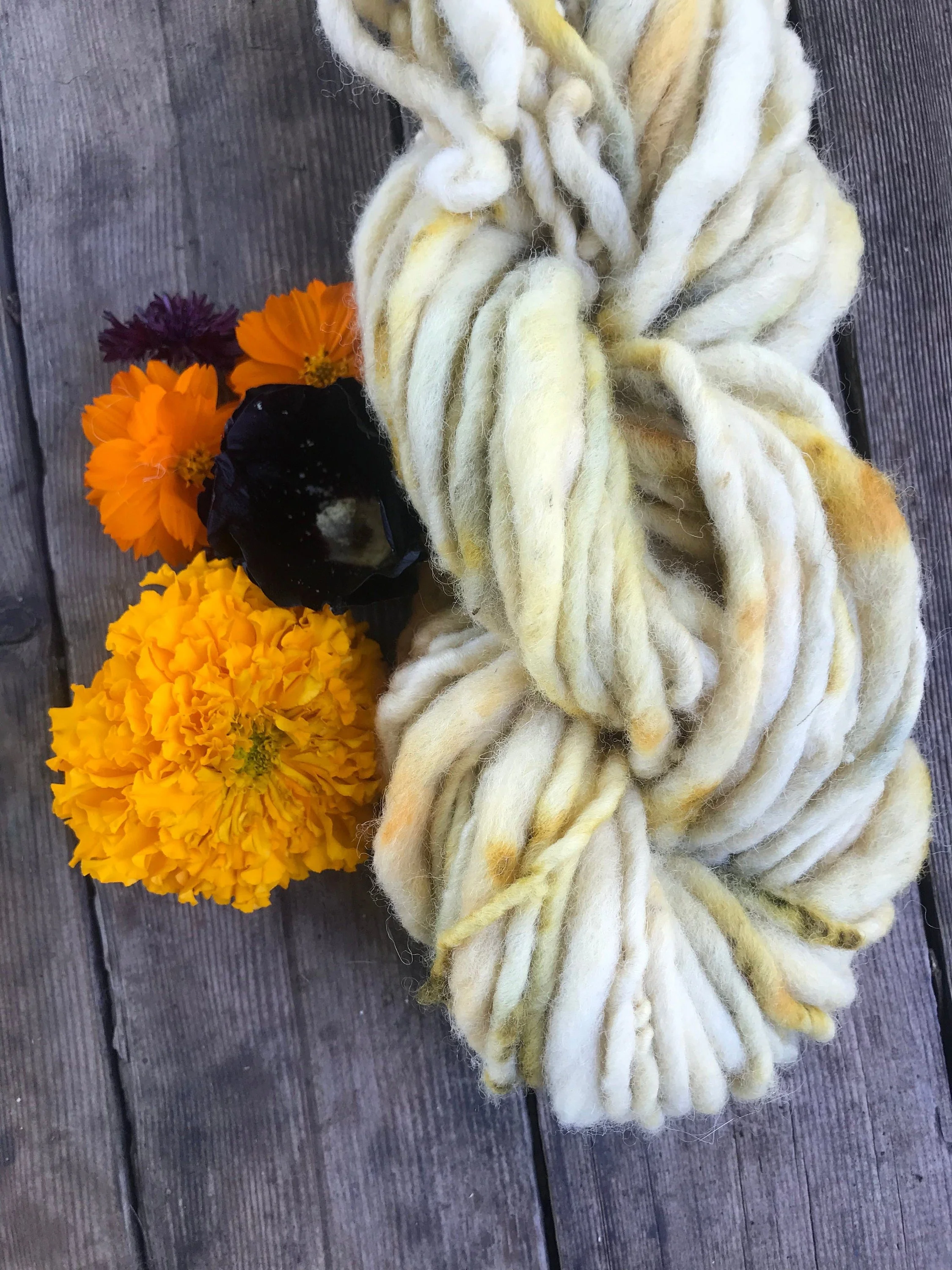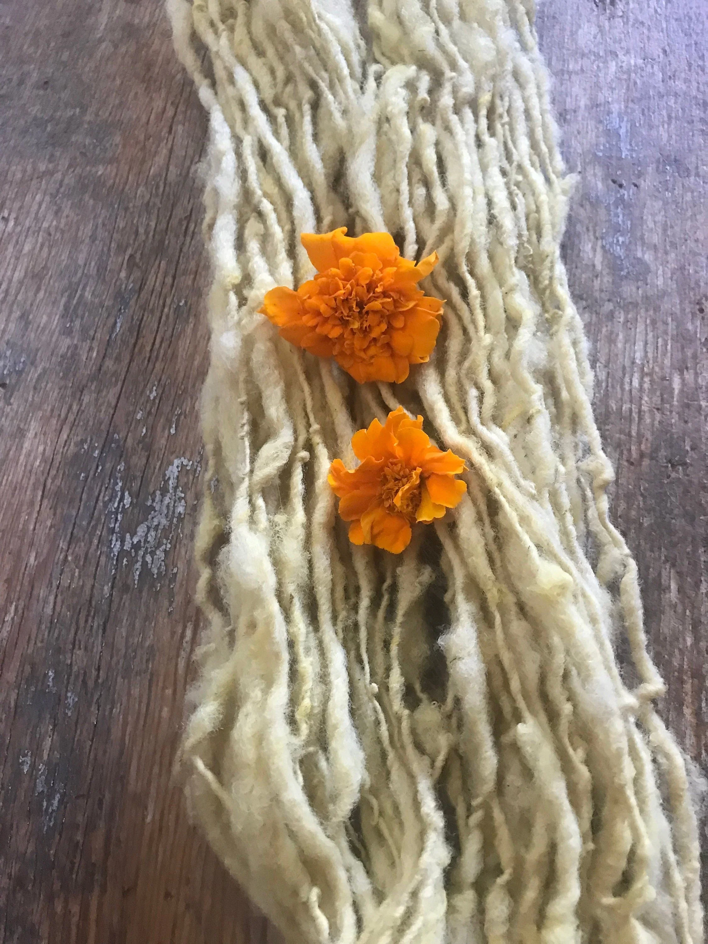 Marigold naturally dyed handspun corriedale yarn, 20 yards
