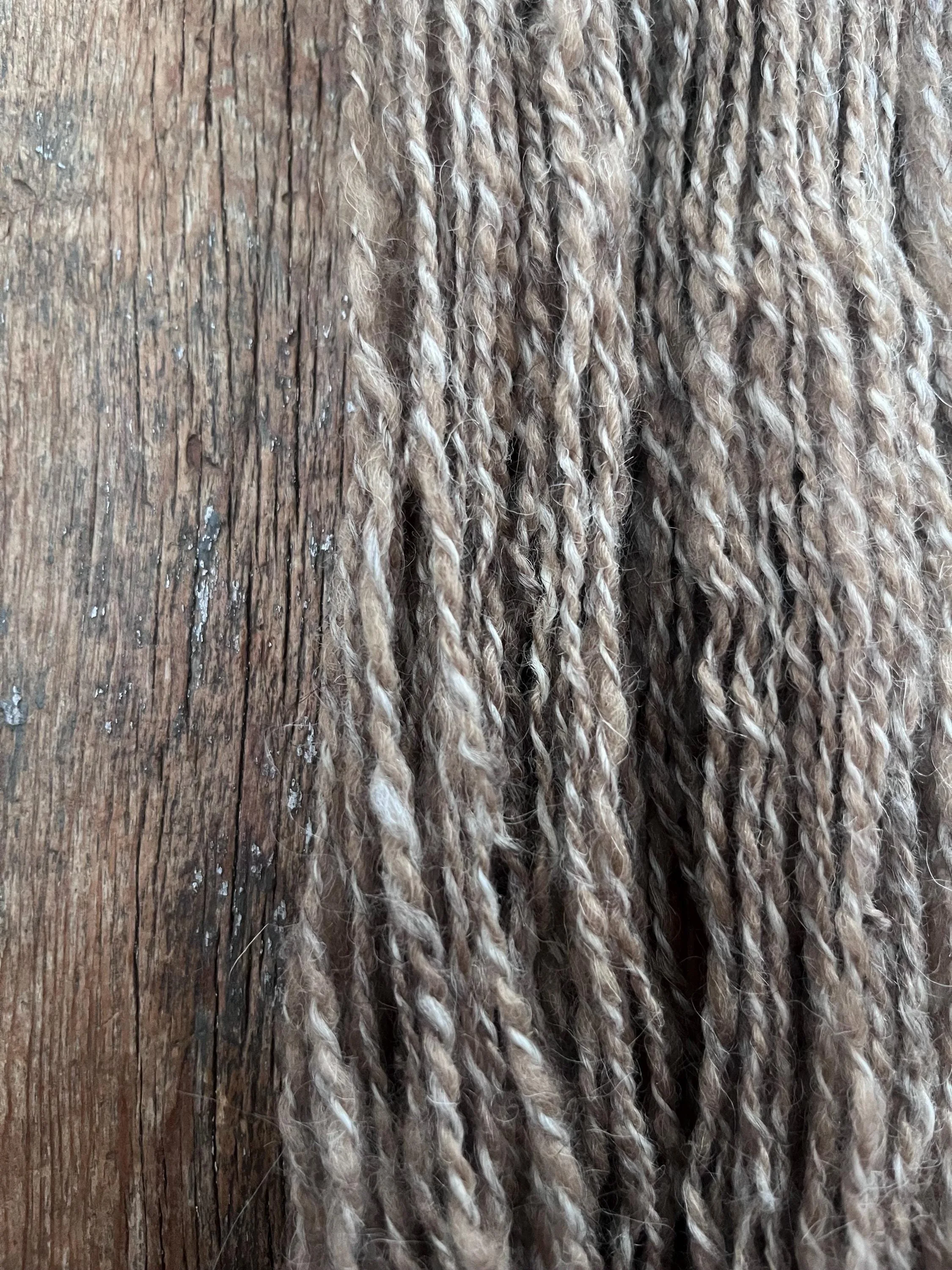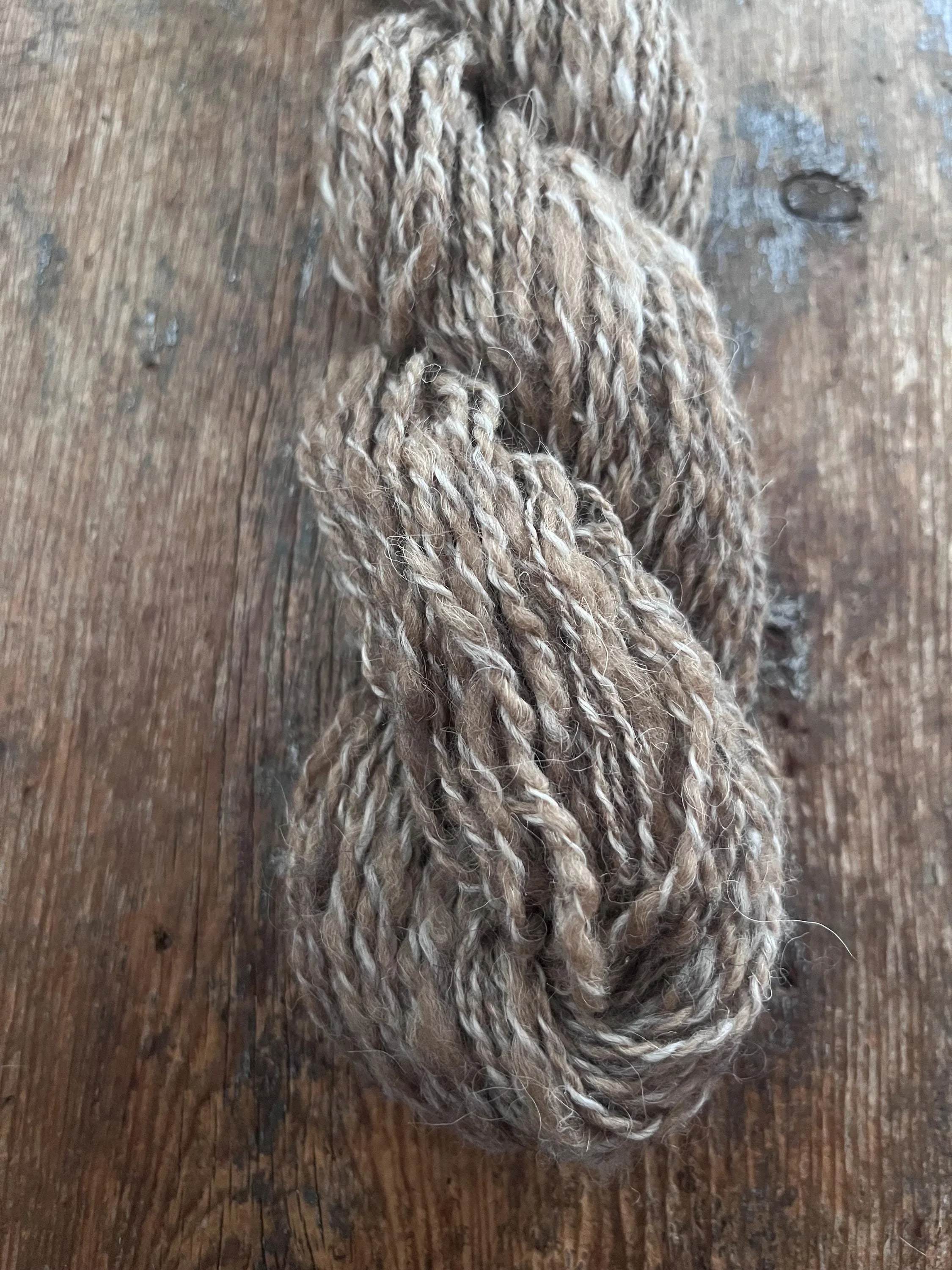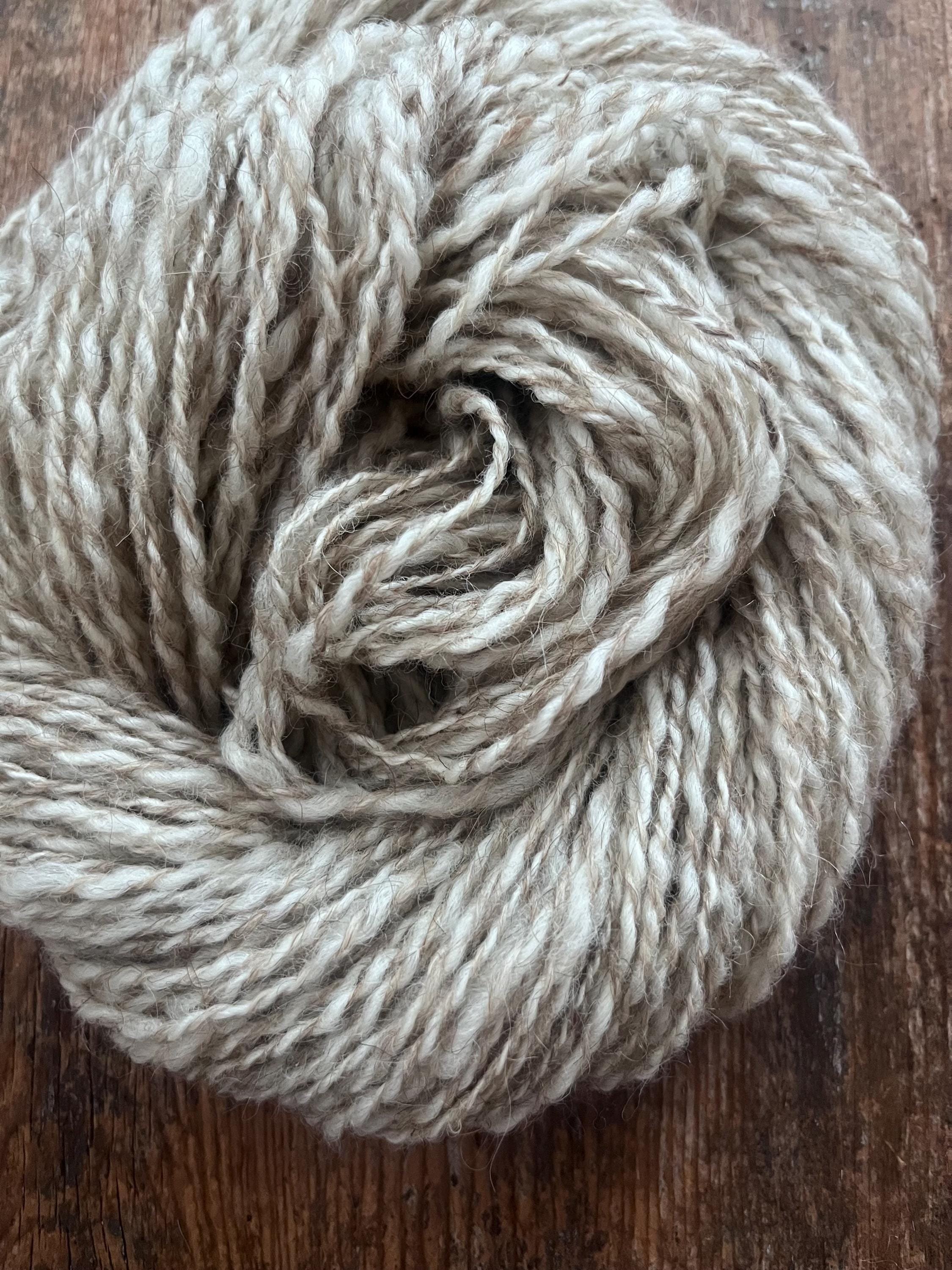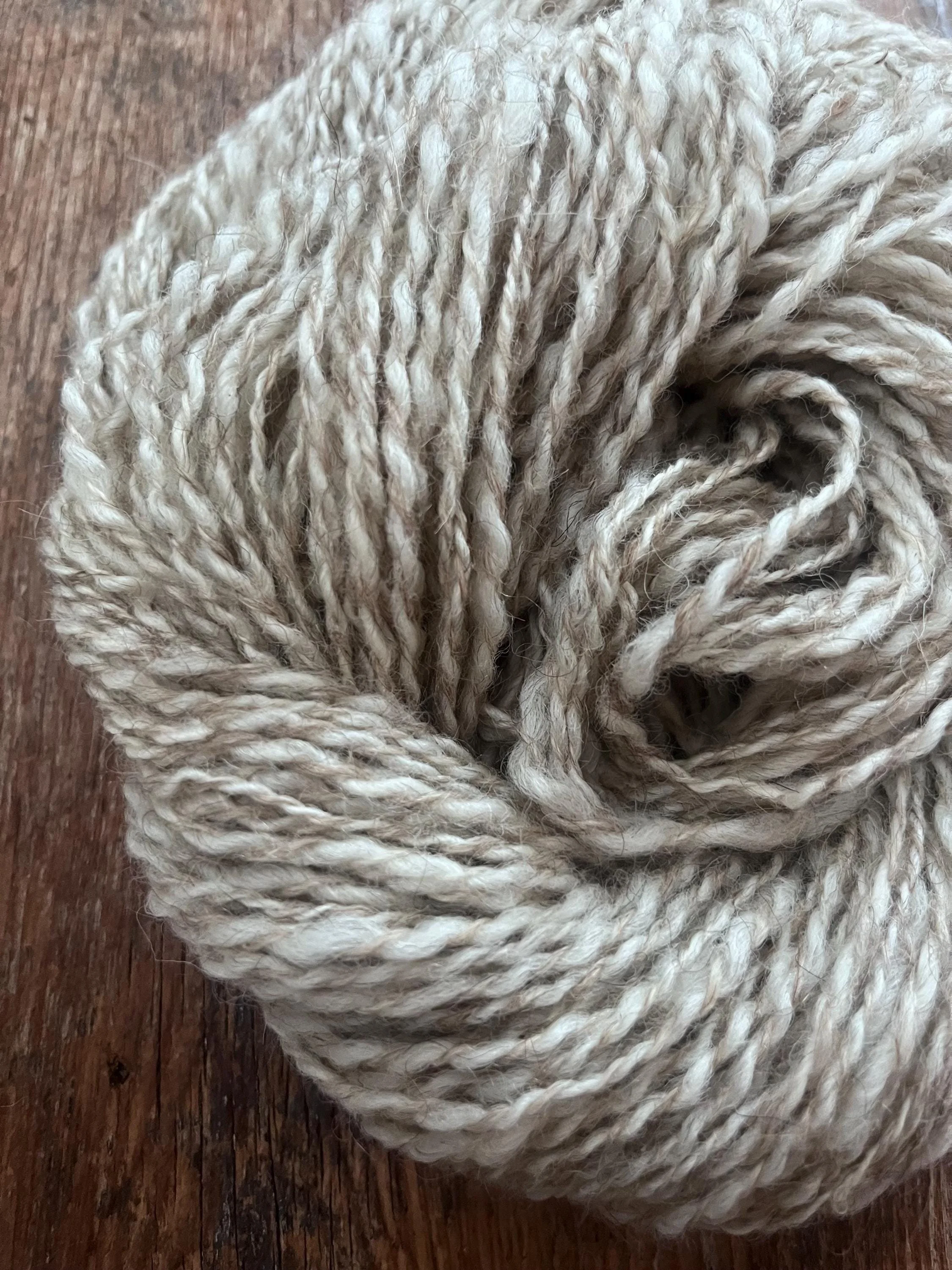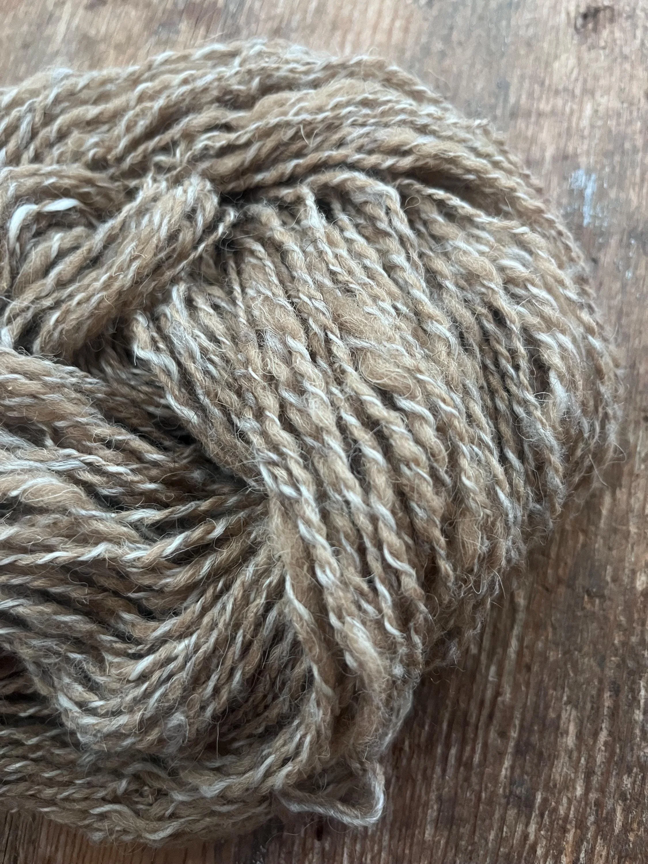 Handspun wool/alpaca cream and tan sport weight yarn, 100 Yards