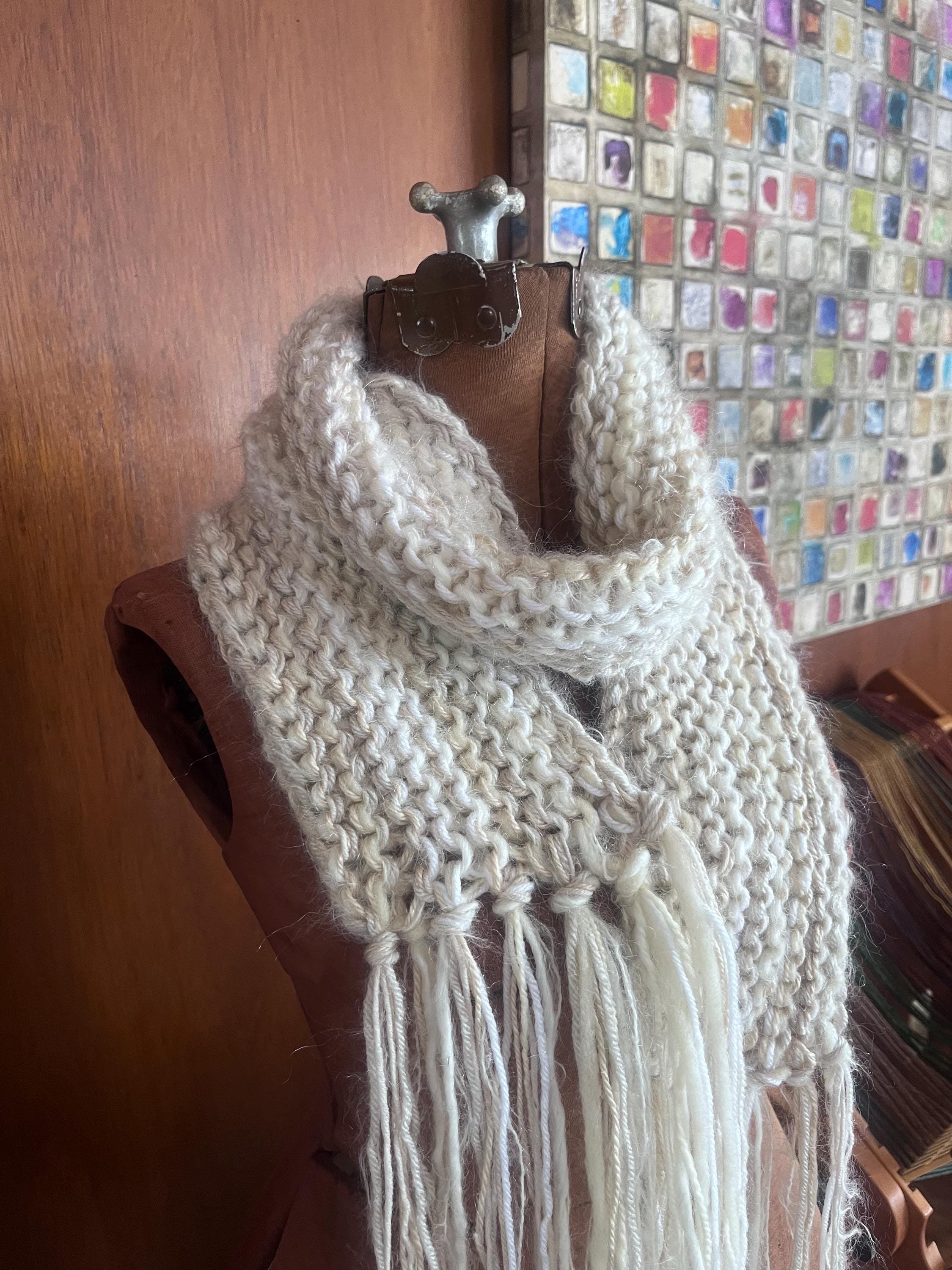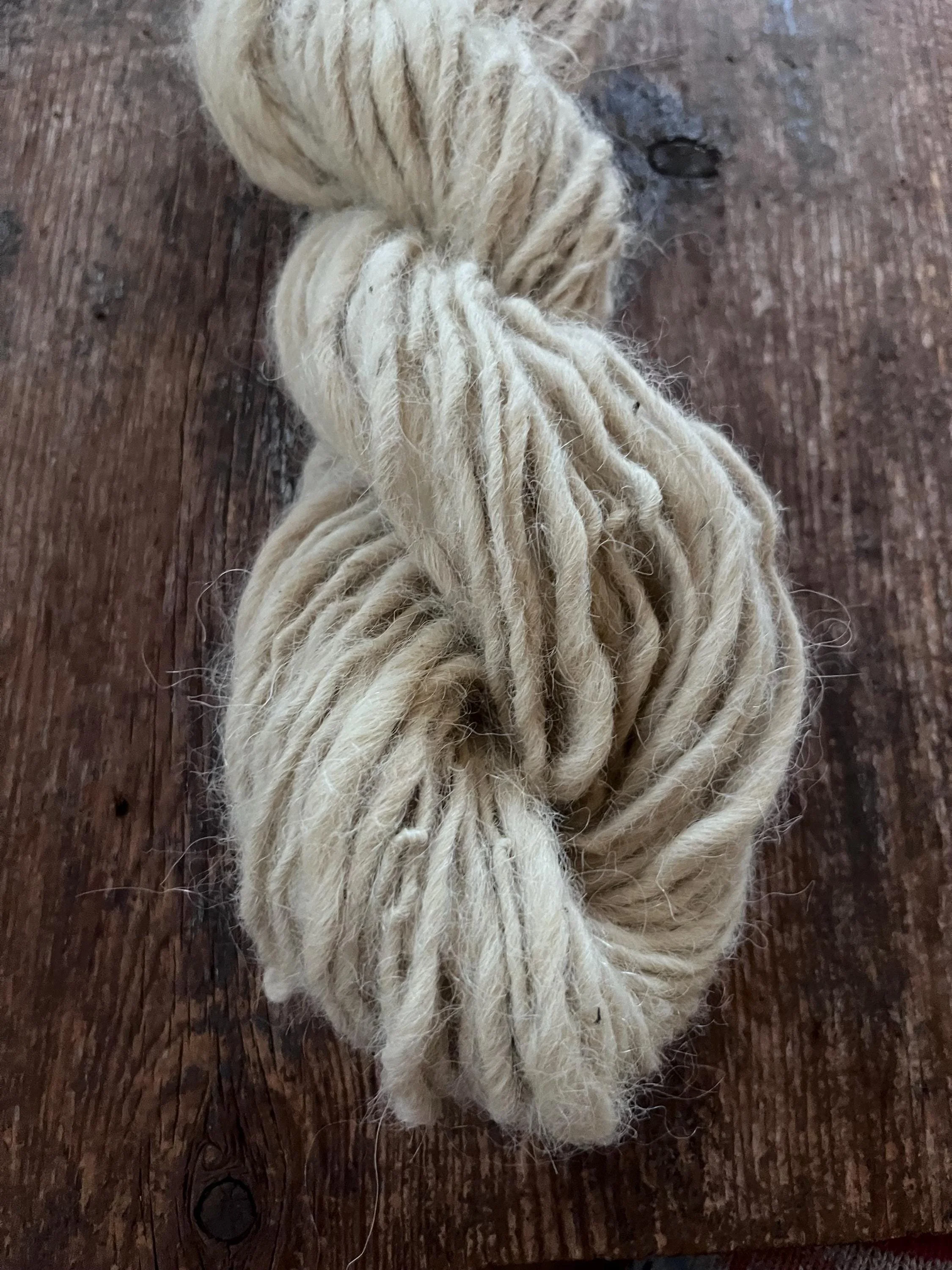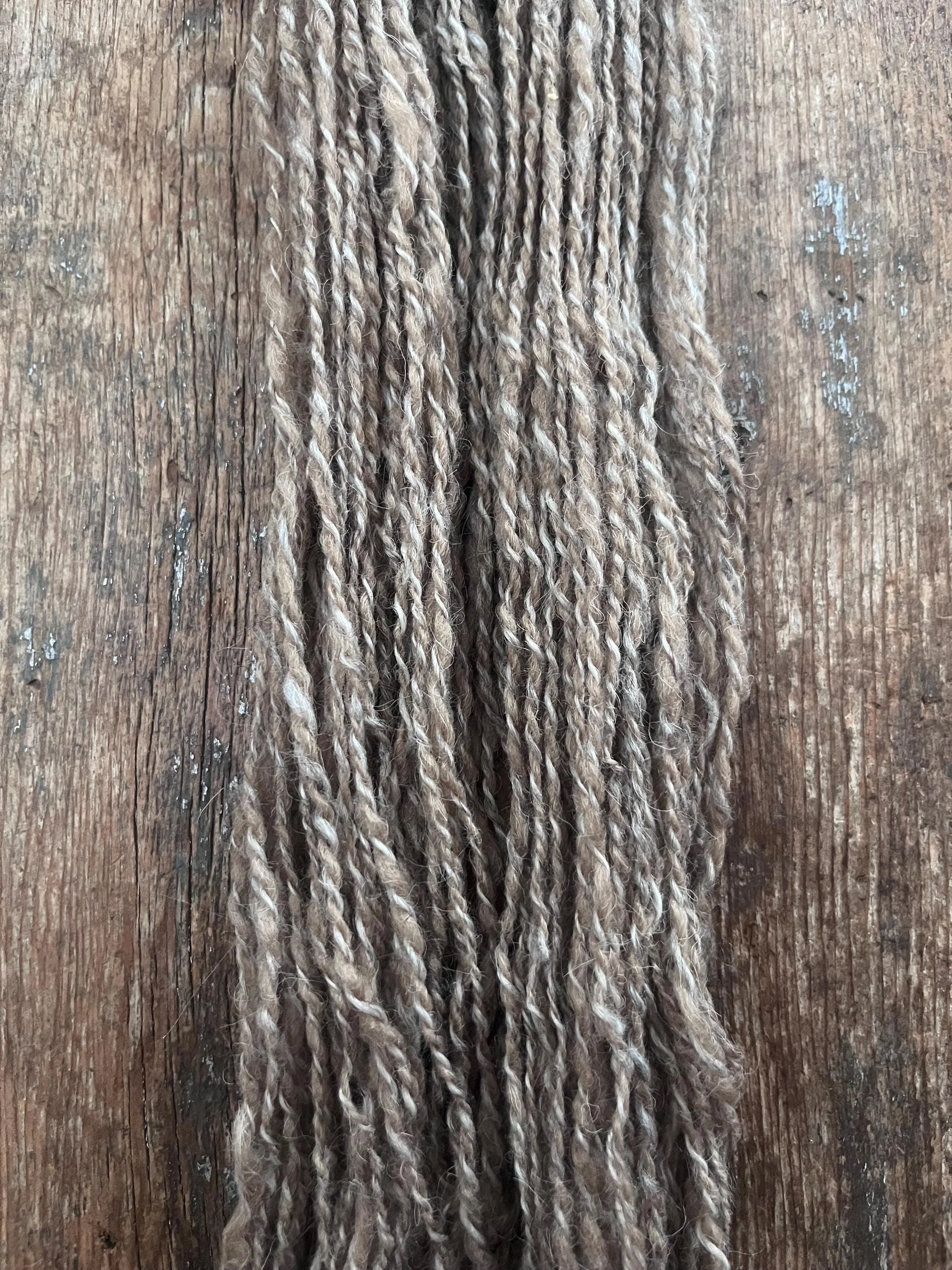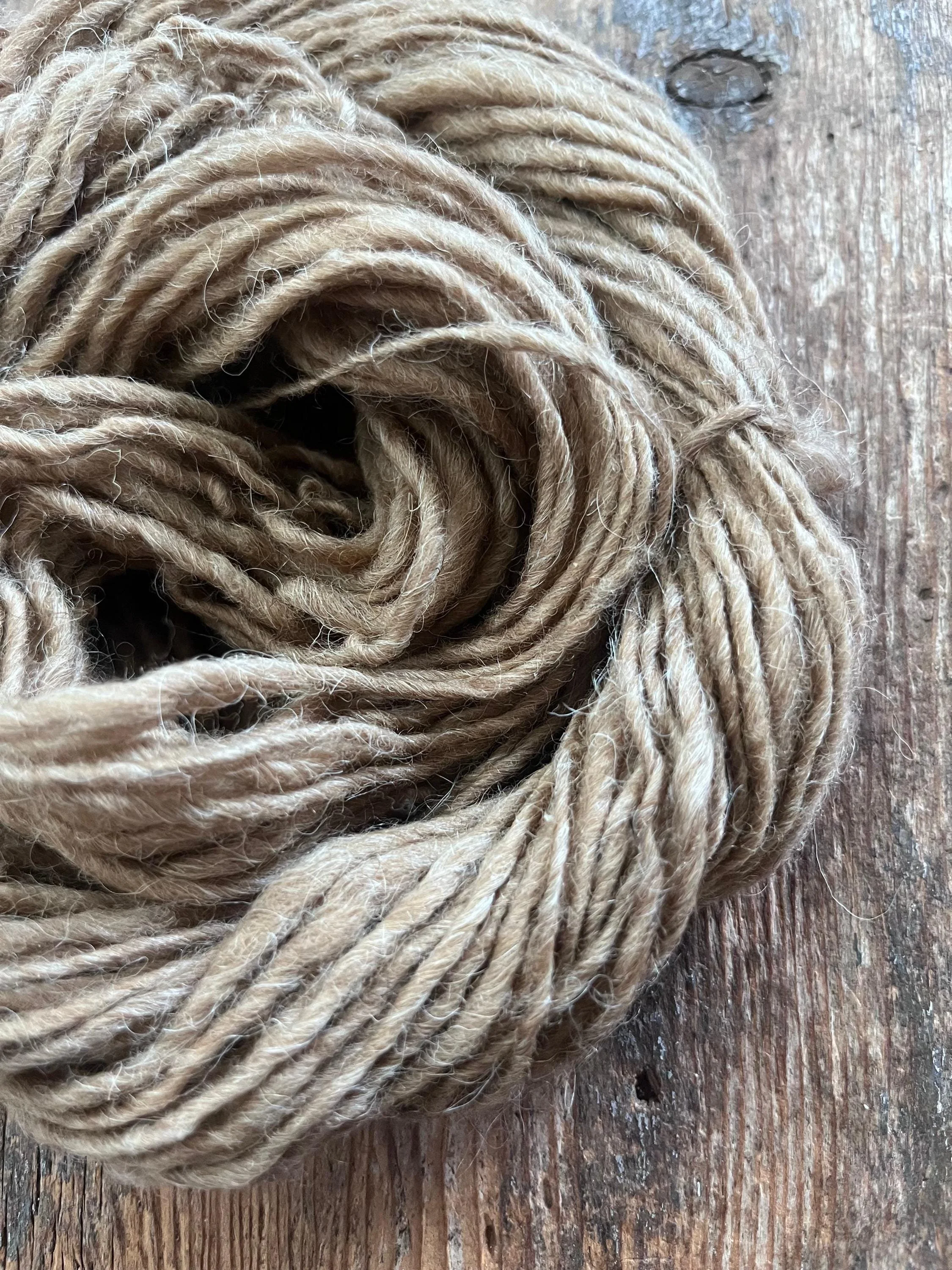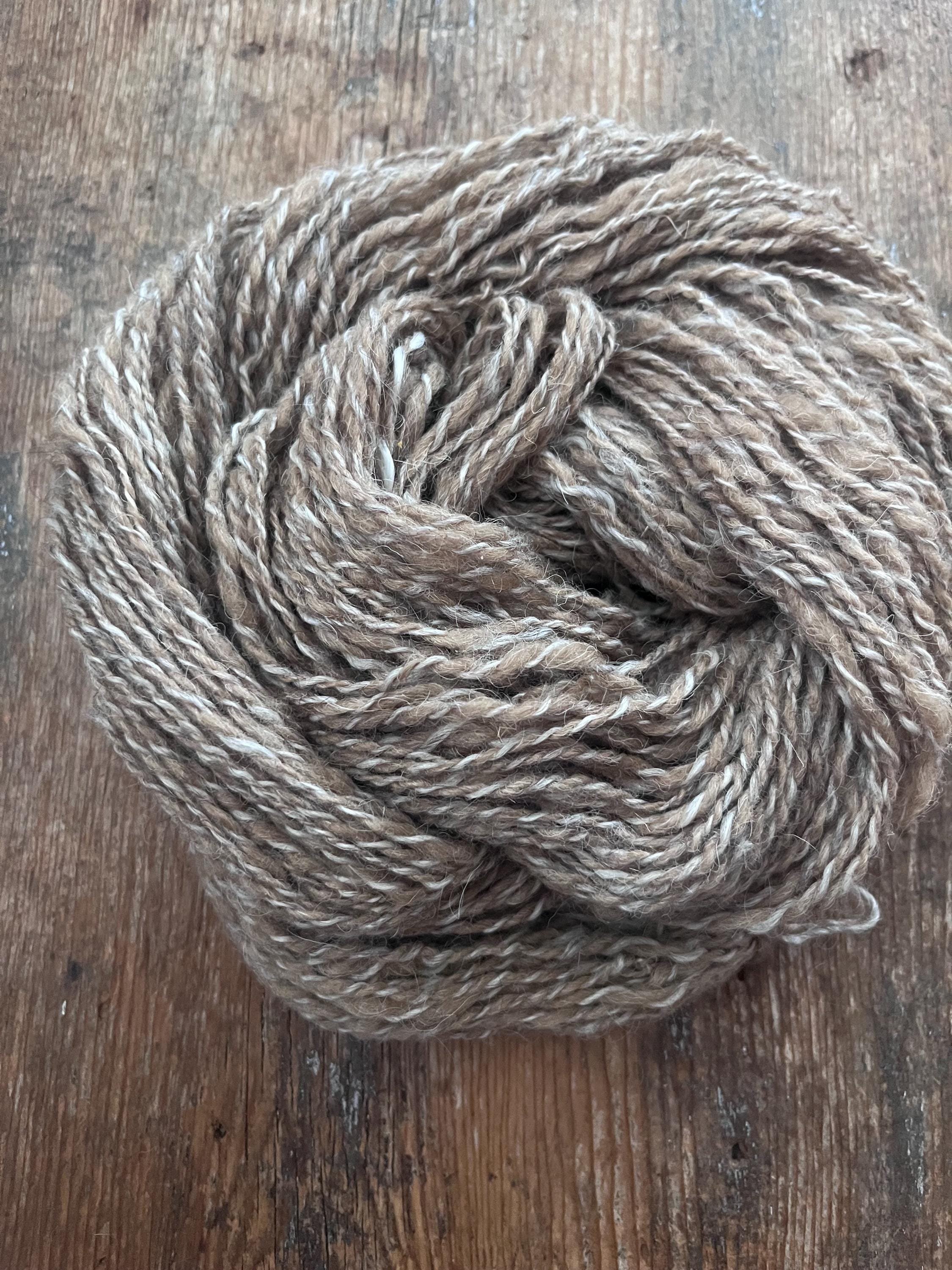 Handspun wool/alpaca cream and tan sport weight yarn, 100 Yards