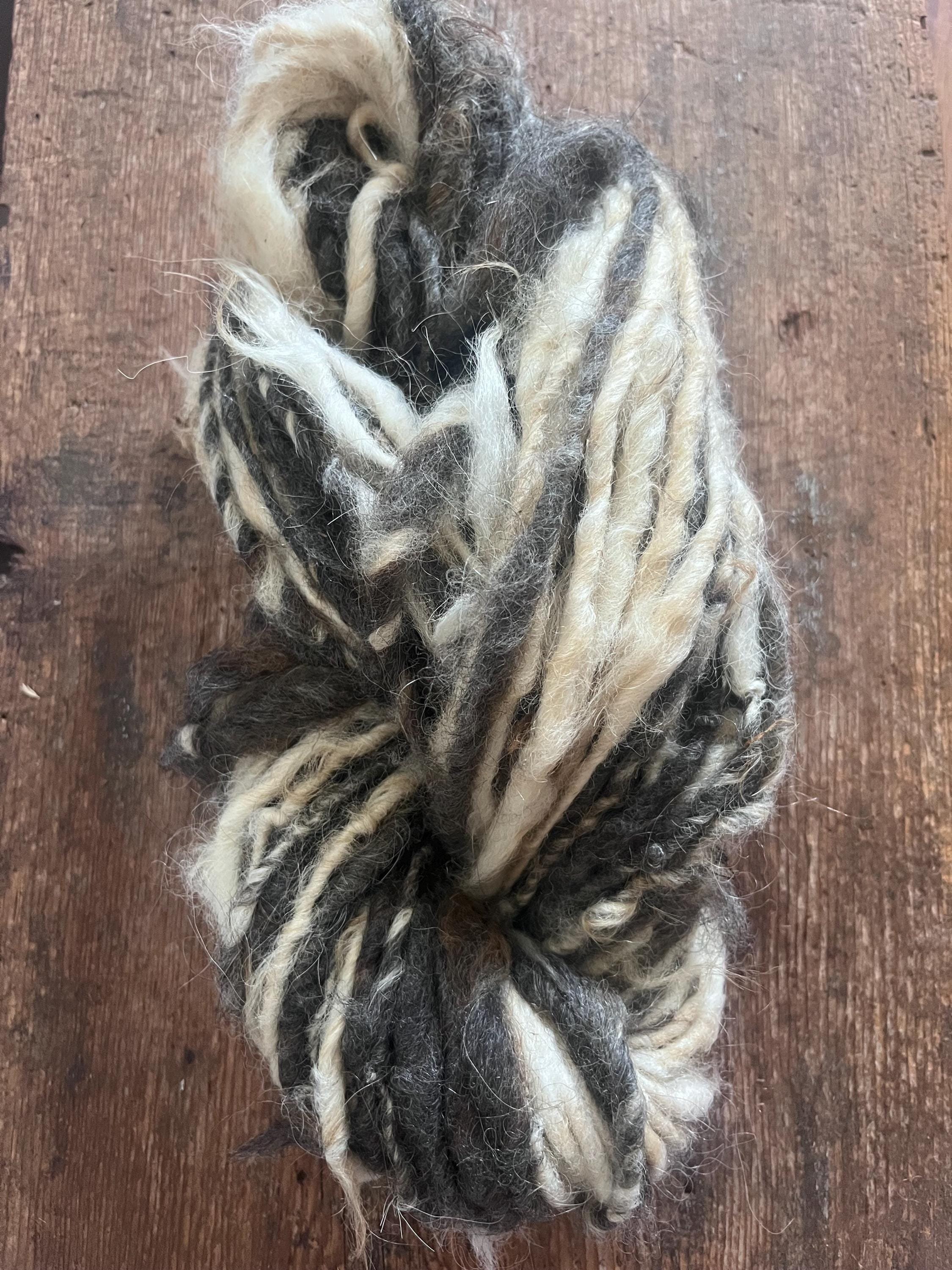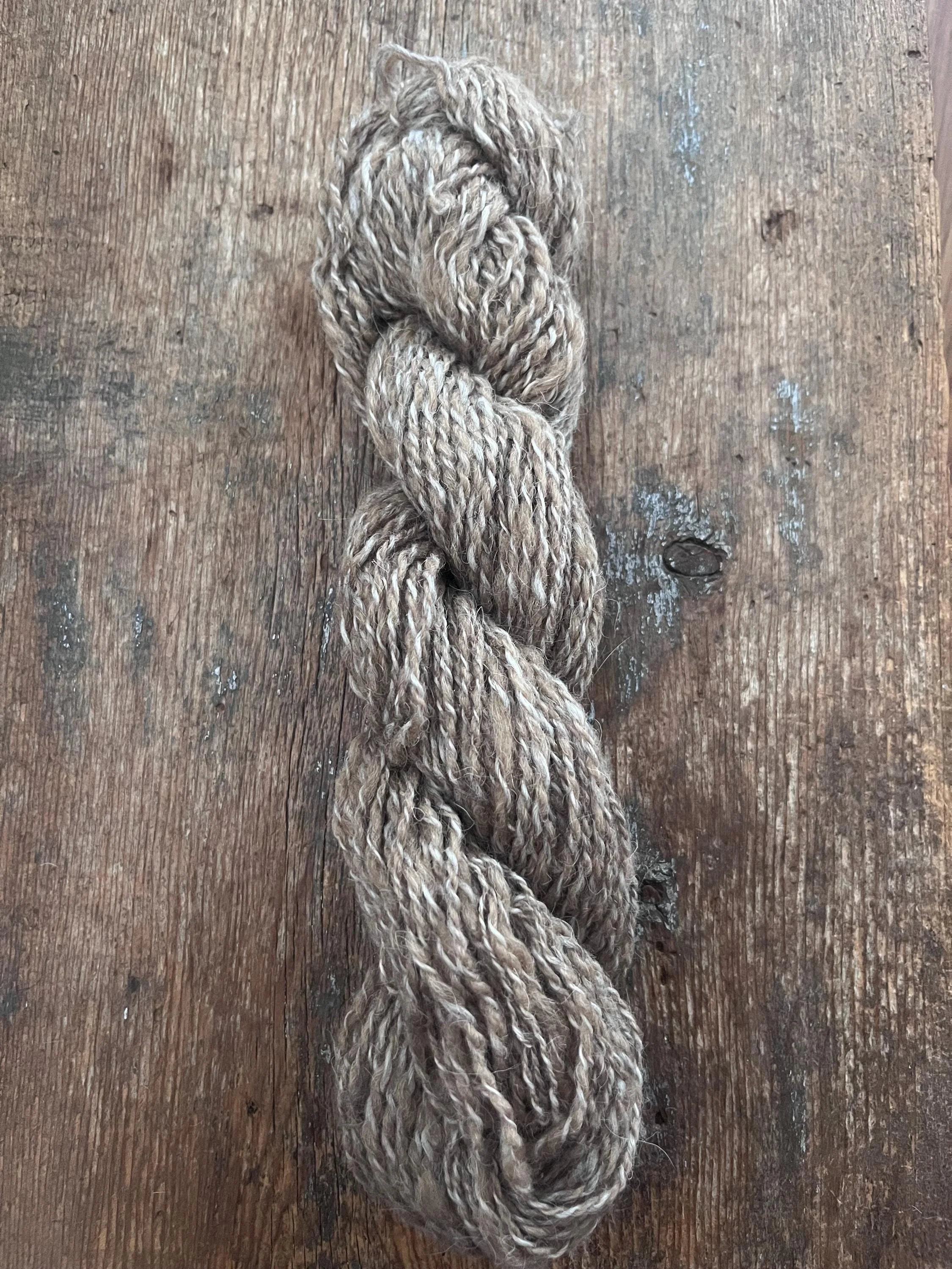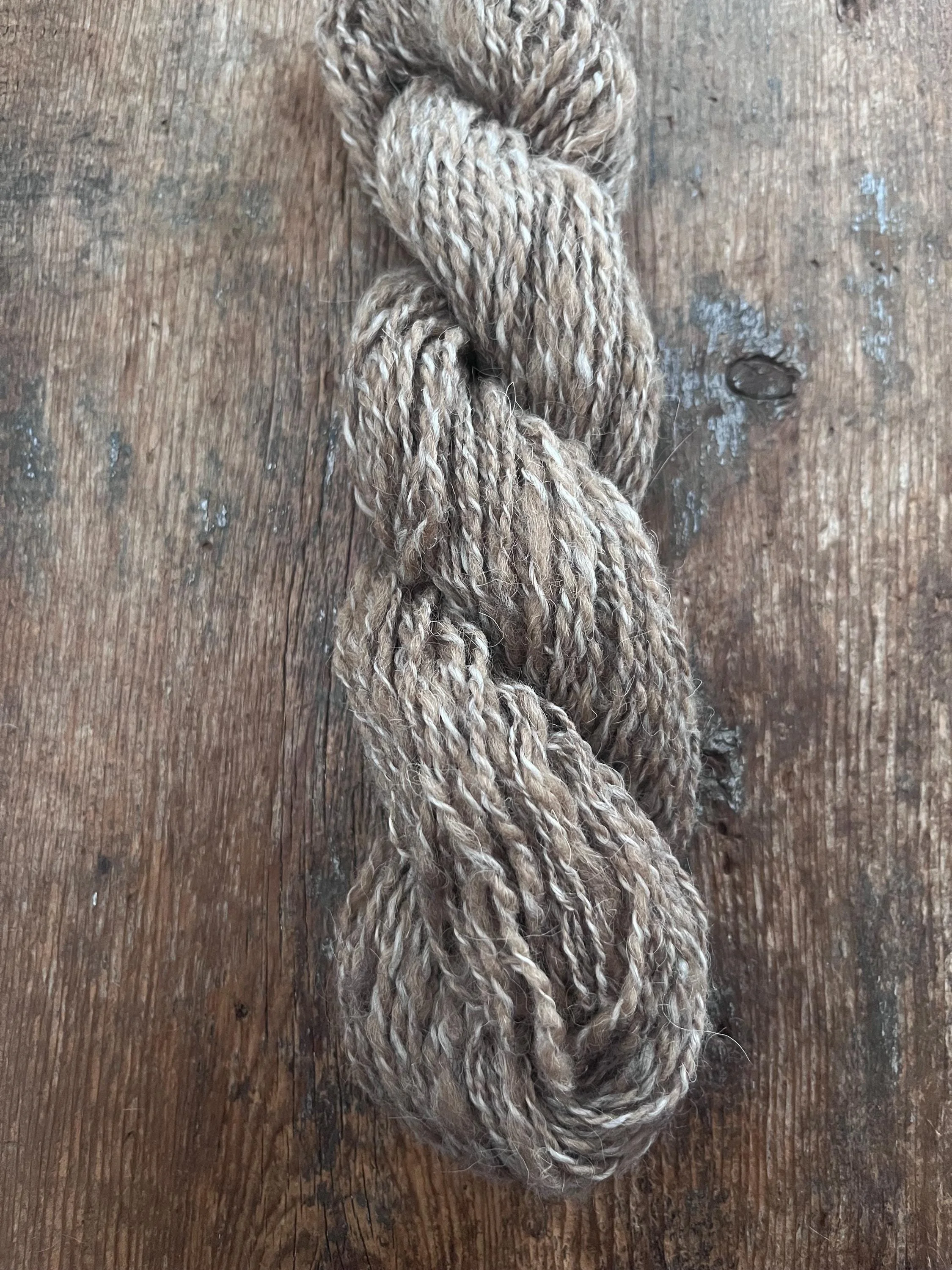 Handspun wool/alpaca grey and tan sport weight yarn, 100 Yards