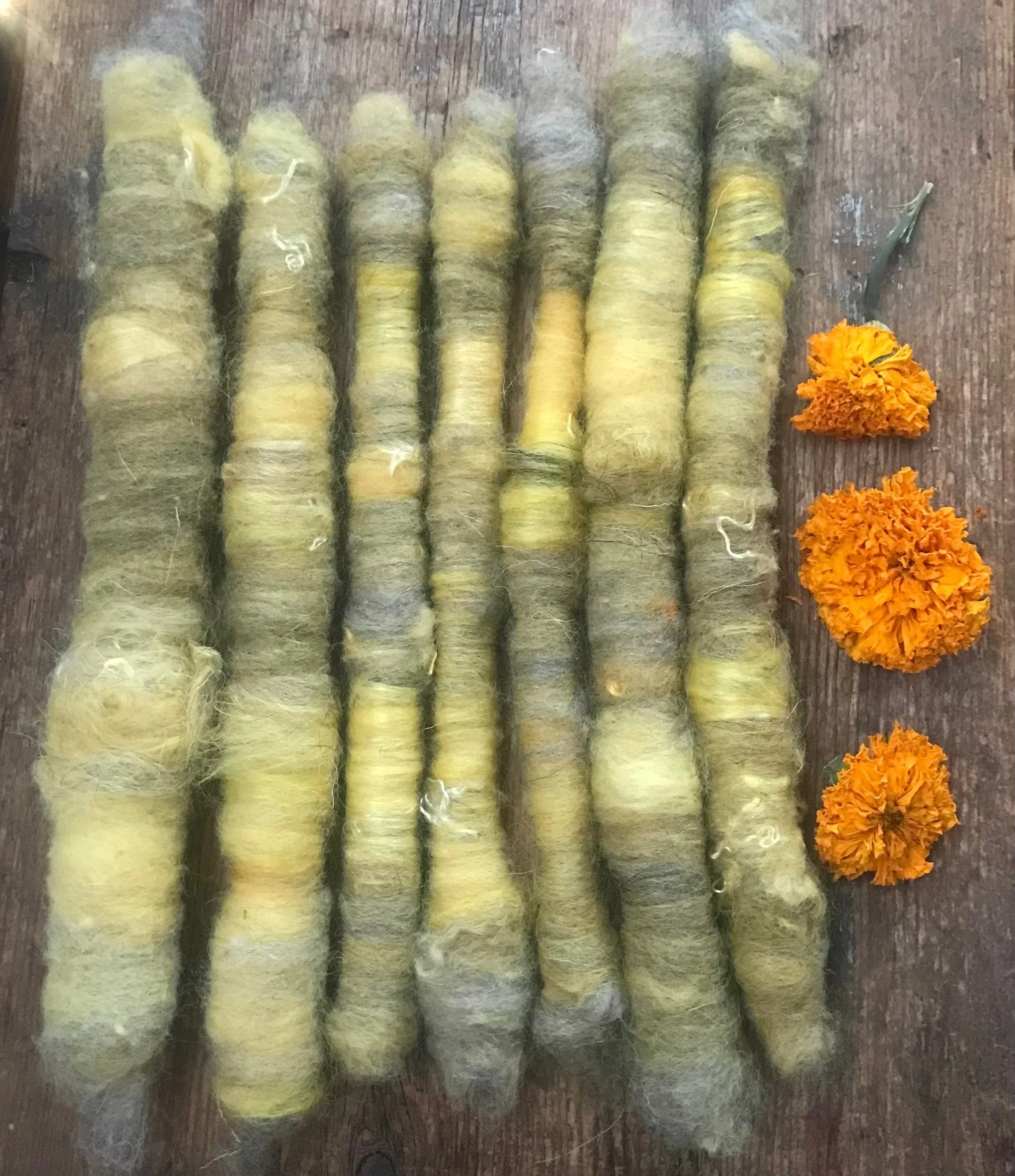 Marigold naturally dyed handspun corriedale yarn, 50 yards