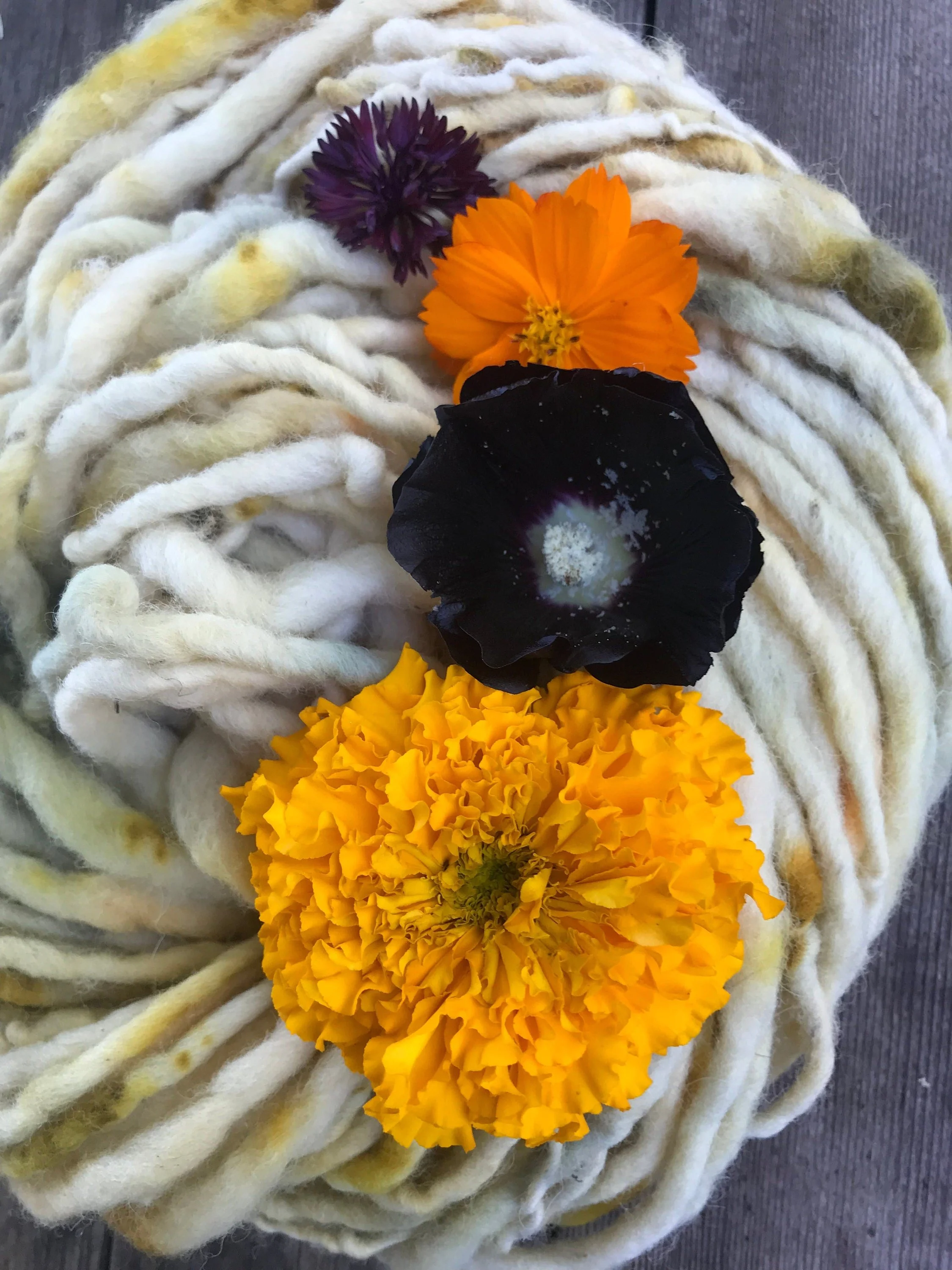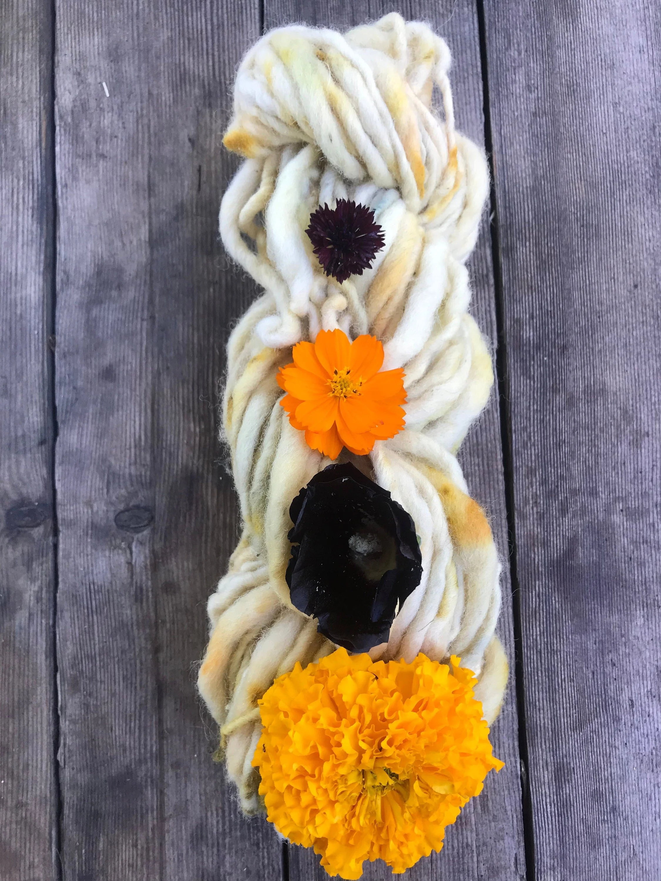 Flower Bouquet naturally bundle dyed handspun yarn, 50 yards