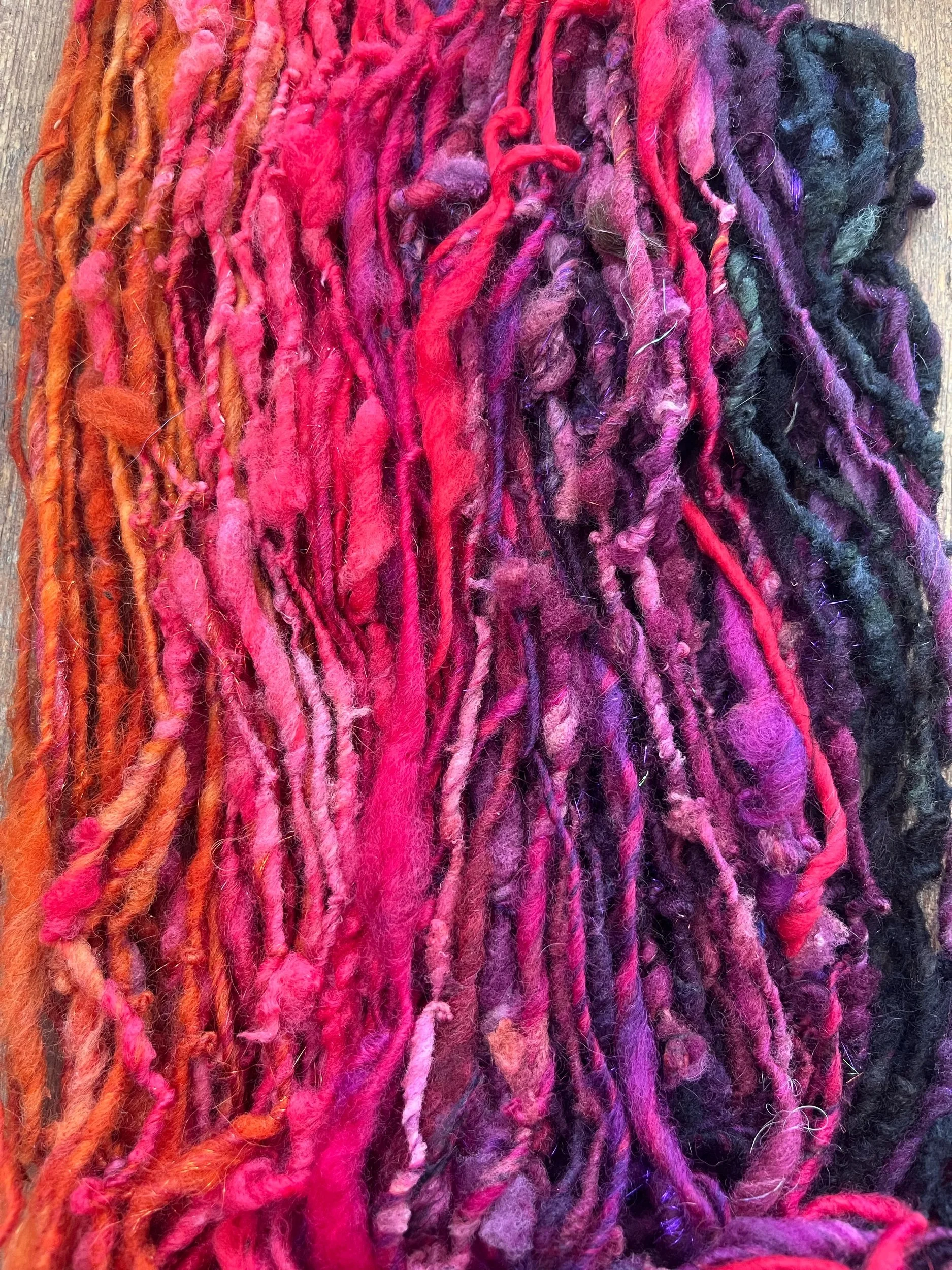 Hot Pink overdyed Finnsheep wool locks yarn, super soft