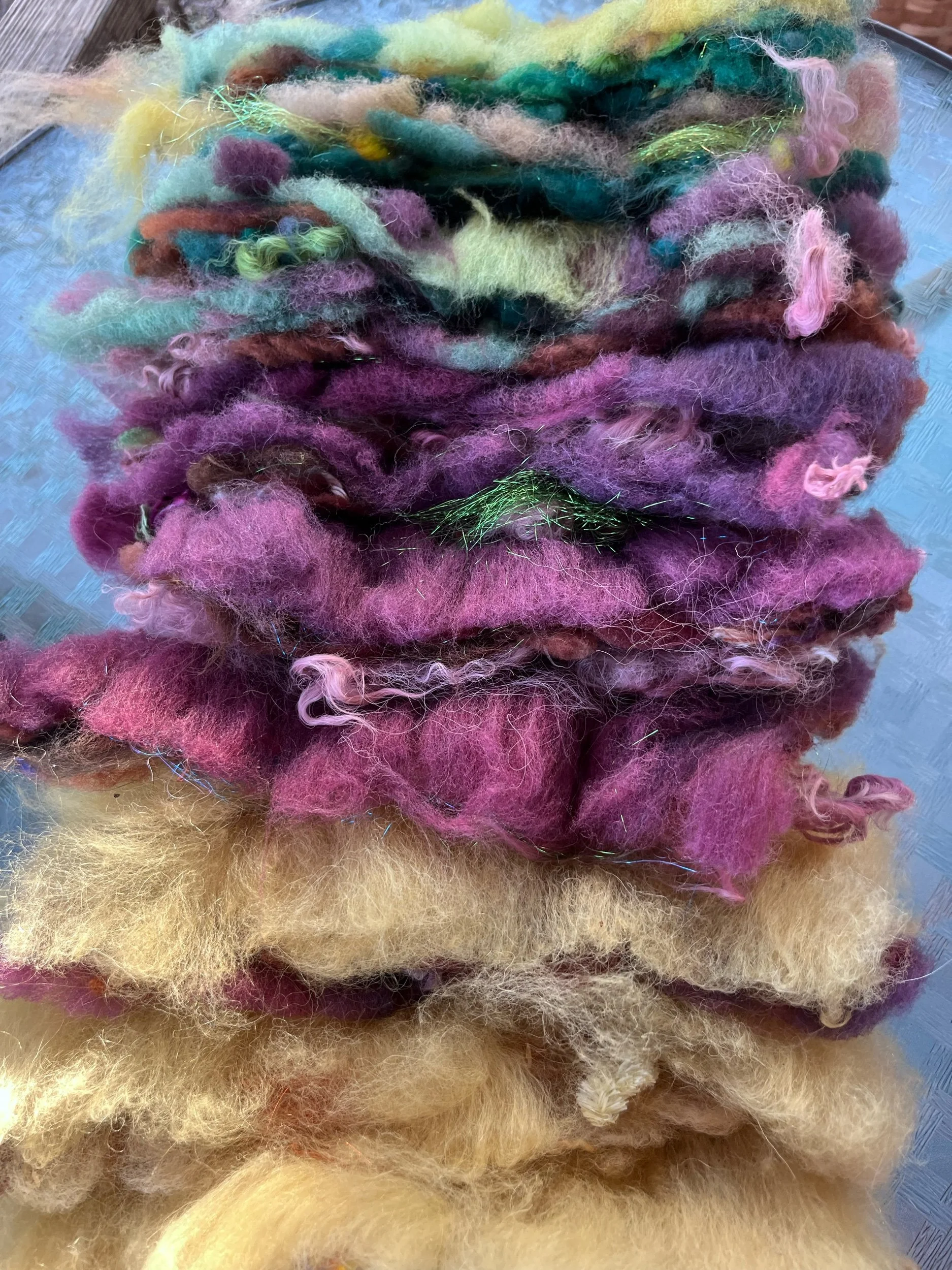 Cosmos naturally dyed art rolags spinning fiber