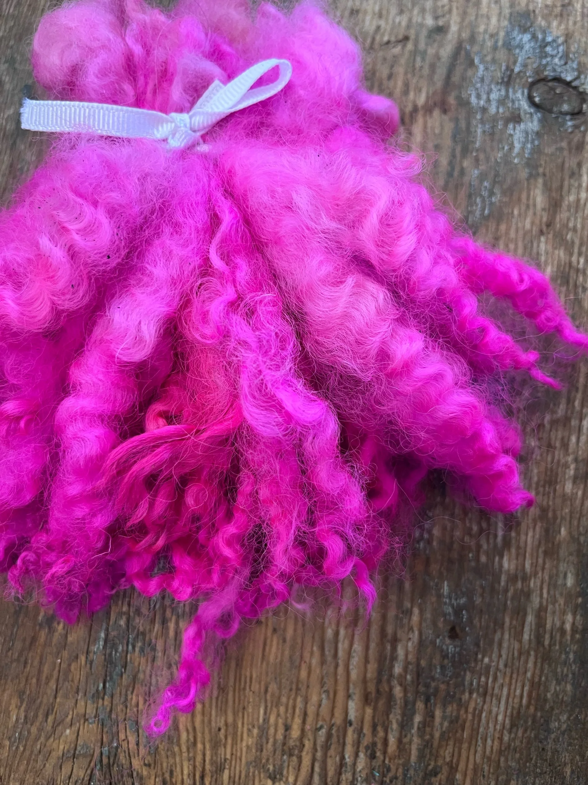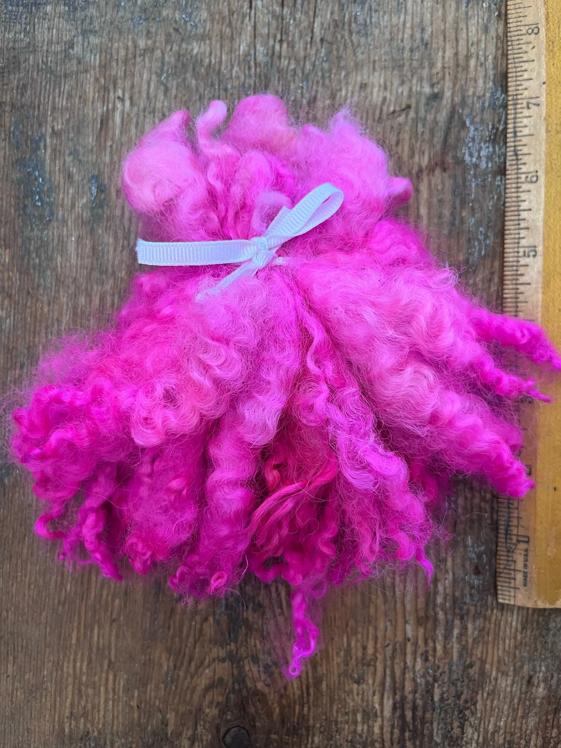 Electric Pink border Leicester/Wensleydale wool locks