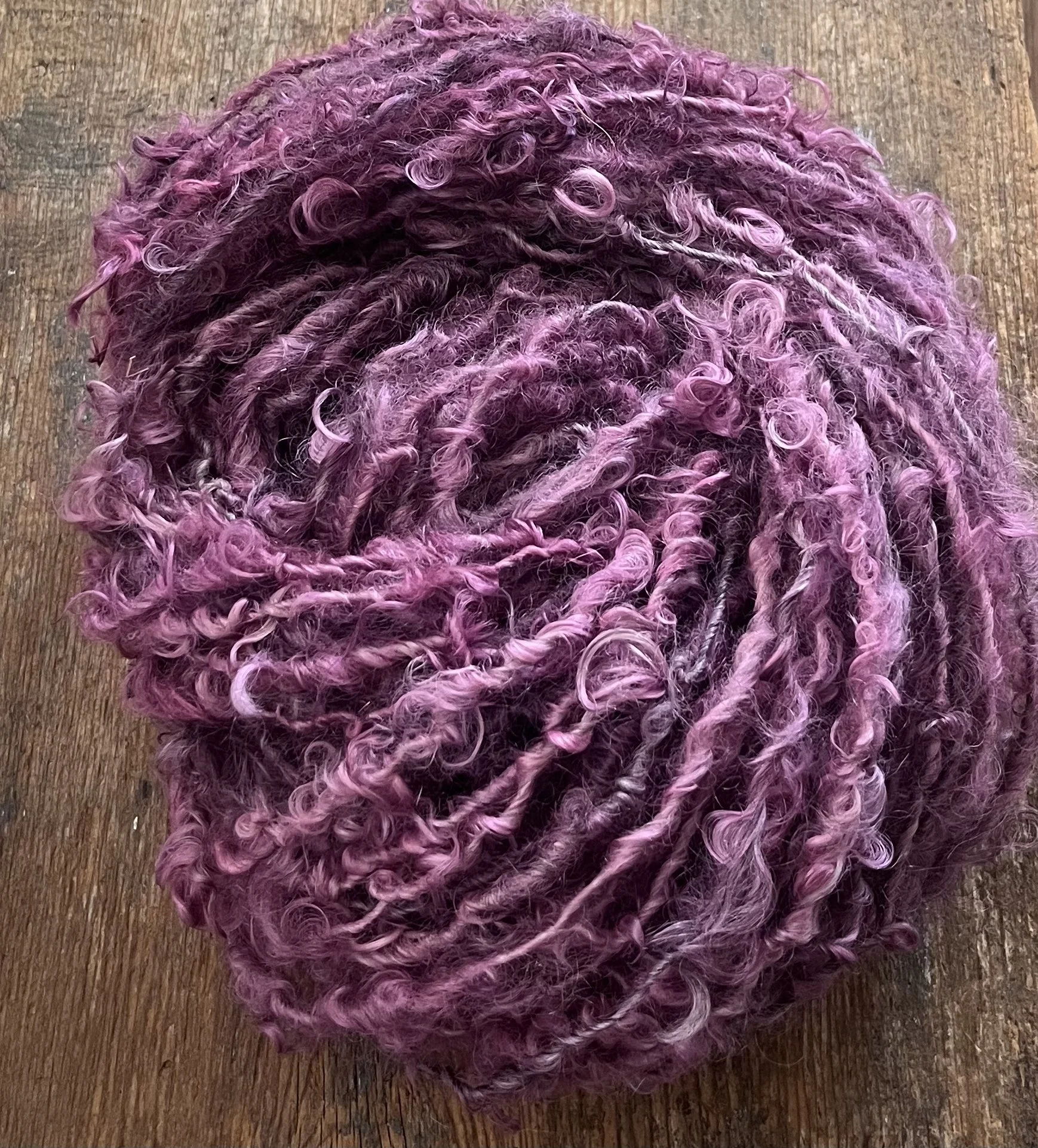 Peony - pink curly handspun yarn, Lincoln wool