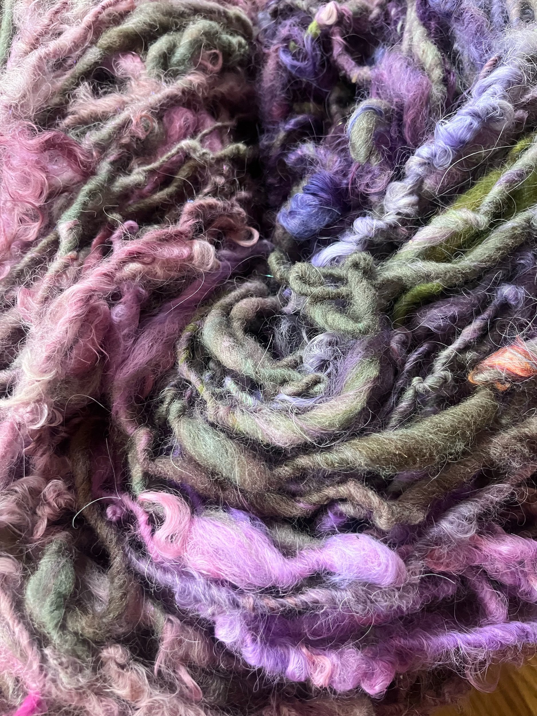 “Shayla” handspun Suri llama art yarn