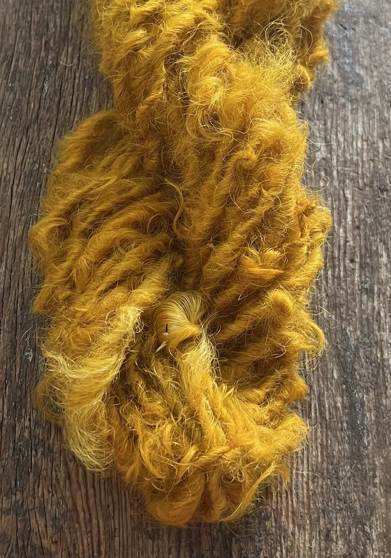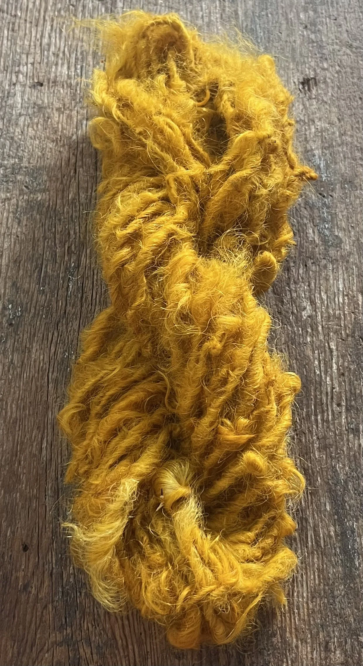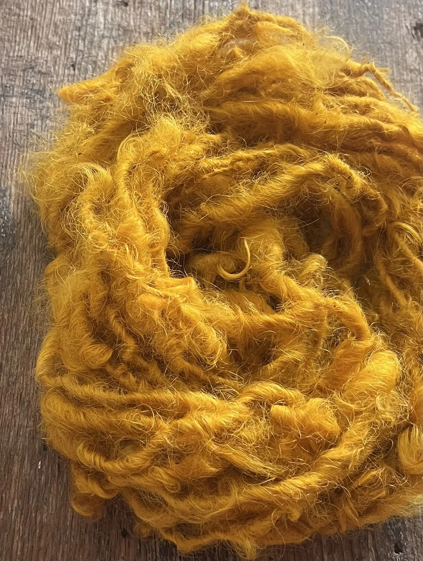 Honey mustard mohair handspun art yarn