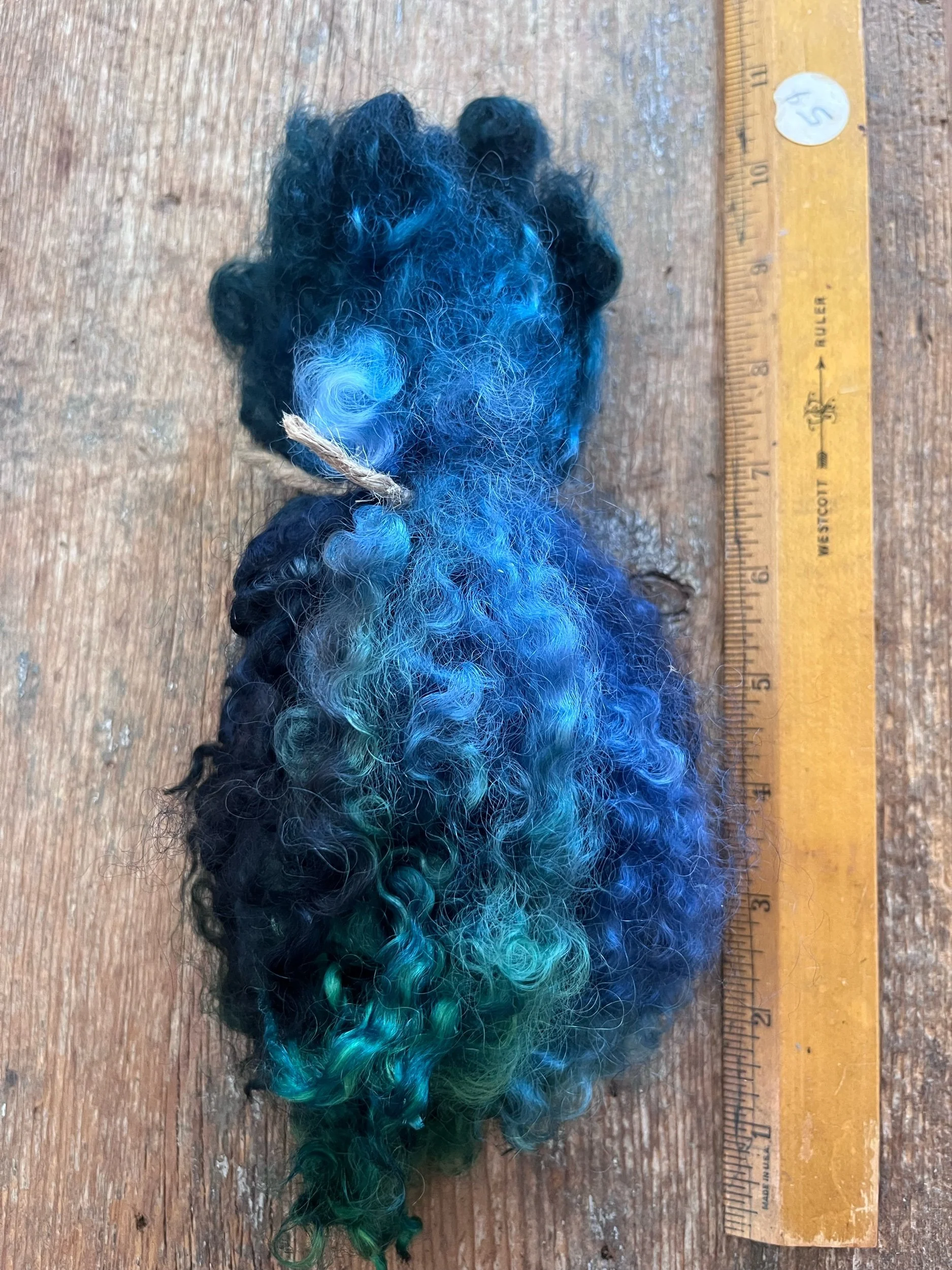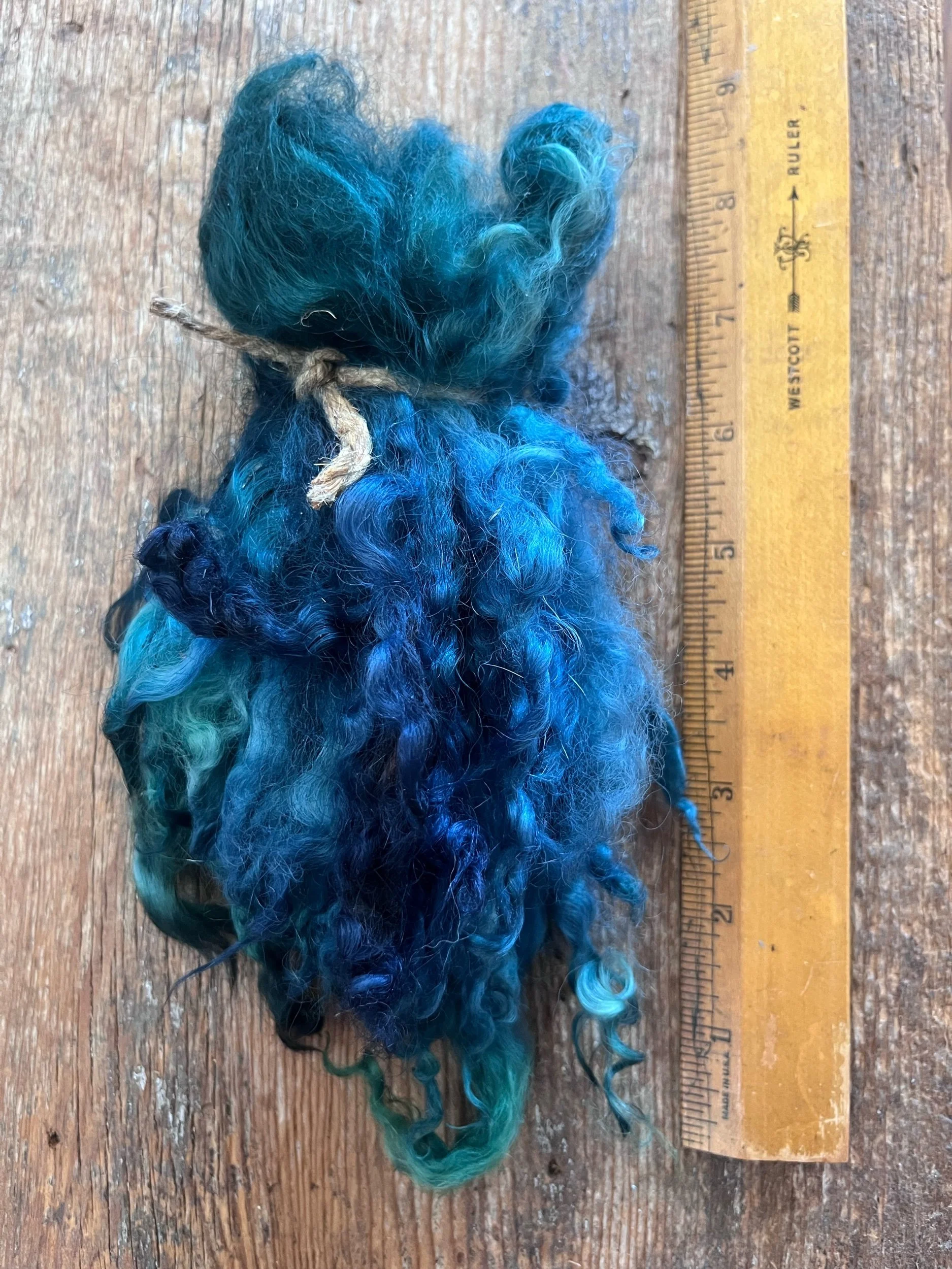 Lovely hand dyed border Leicester/wensleydale x locks, wash and hand dyed. 6-8 inch general staple length, a few may be a bit shorter or longer than that. Tied in 1 oz. bundles. Soft, shiny!
